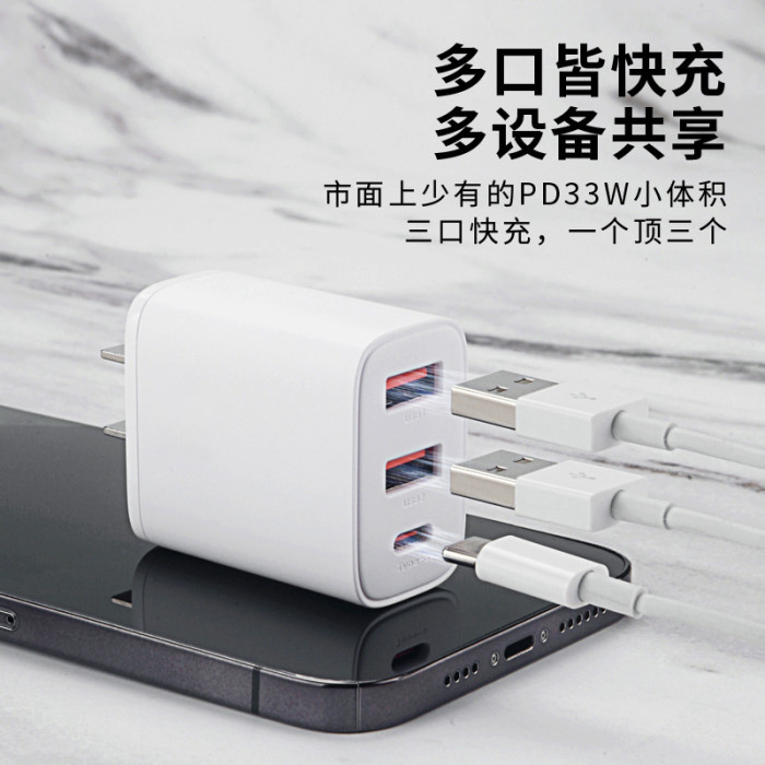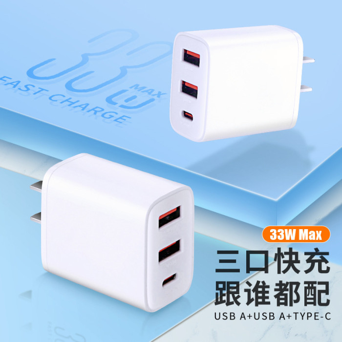 3C認證智能快充三口33W充電頭適用蘋果16安卓手機平板USB接口Tyec