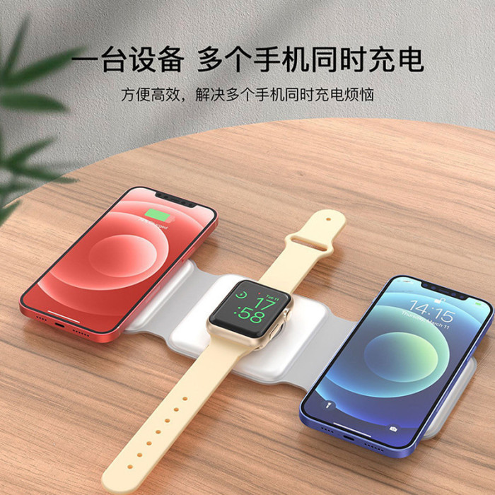 三合一無線充電器磁吸15W快充可攜式折曡手機耳機手錶磁吸快充閃充