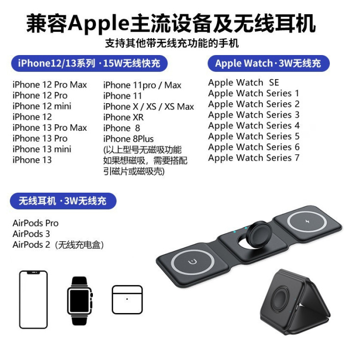 無線充三合一磁吸充電器15W快充折曡手機耳機手錶充電磁吸快充