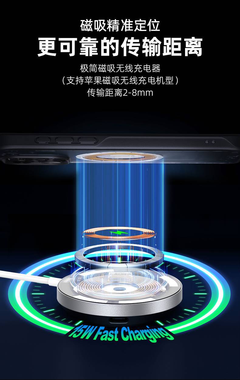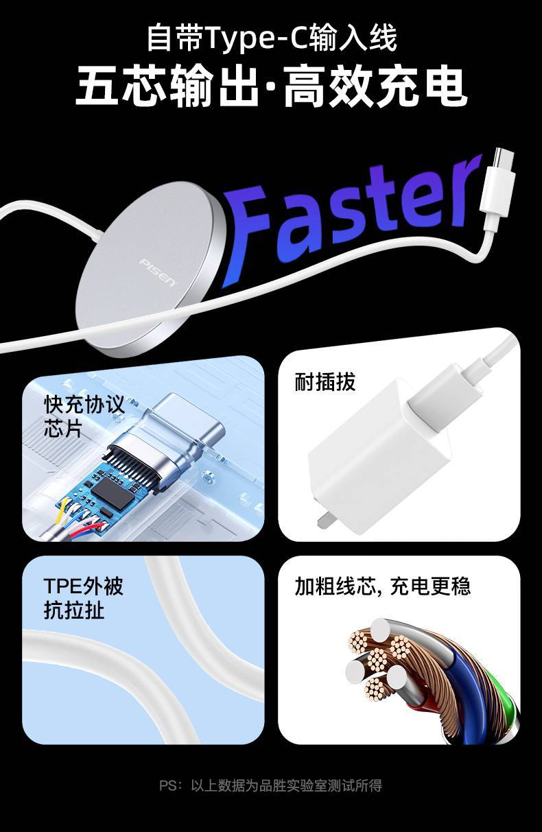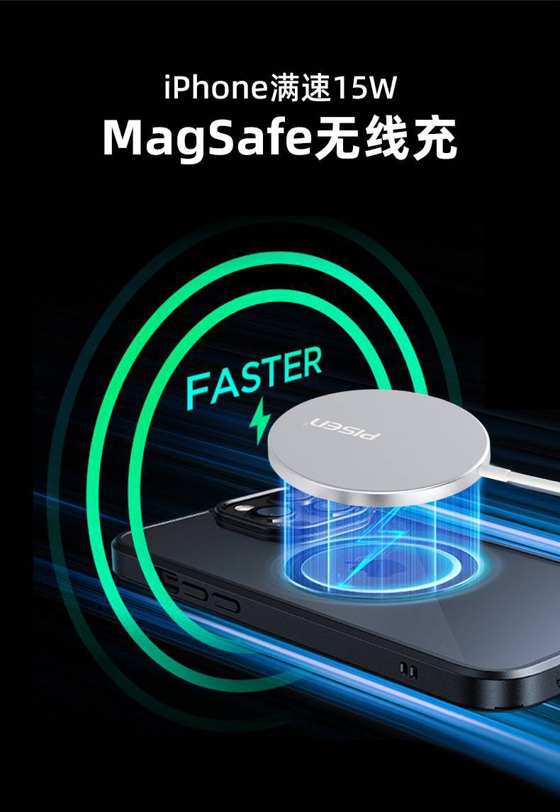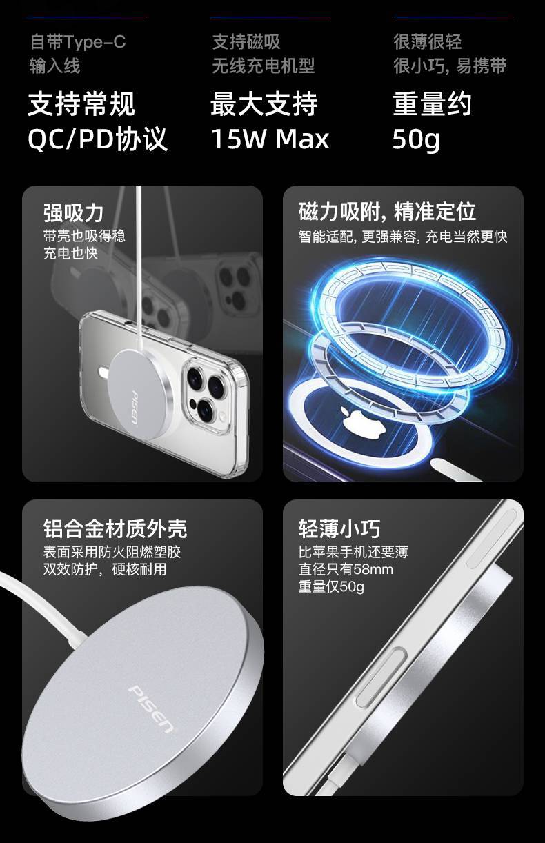 品勝15W無線快充magsafe磁吸式充電器適用於蘋果11/12pro華爲合金