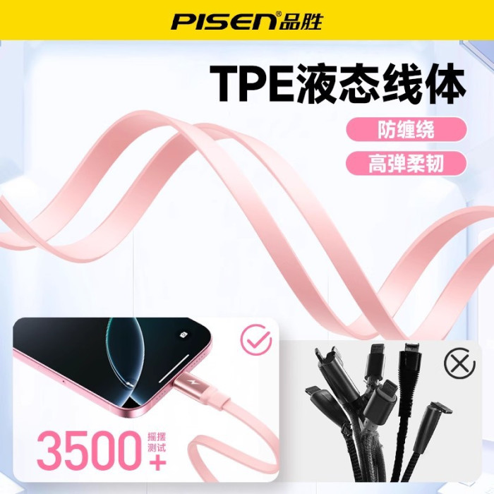 品勝一拖三伸縮數據線66W快充數據線三合一充電線禮品圖案6A
