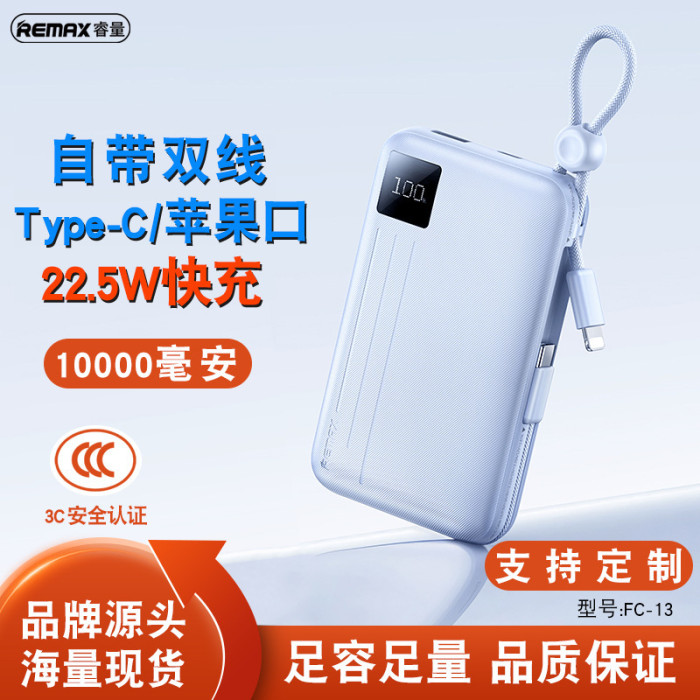 remax 自帶線充電寶適用蘋果 雙線快充充電寶20000安培3c可上飛機
