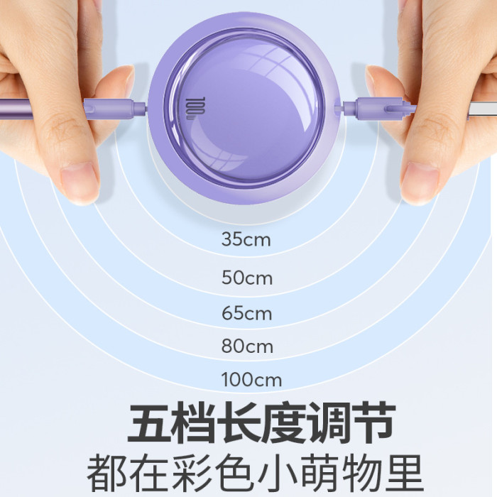 圓鏡四合一伸縮數據線100W快充電源線適用蘋果安卓Type-c華爲車用