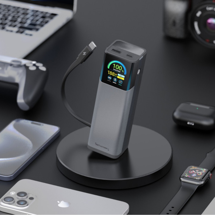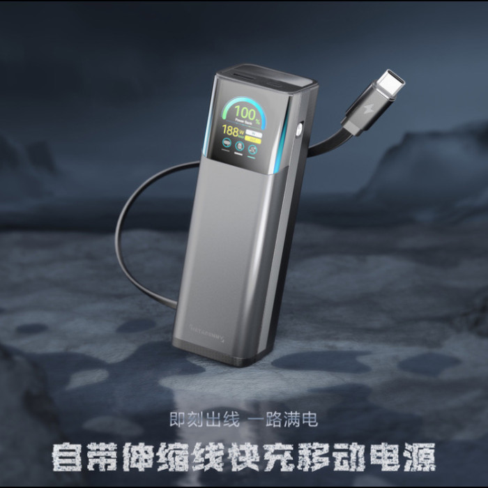 自帶伸縮線100W超級快充TFT大功率充電寶27000安培筆電行動電源
