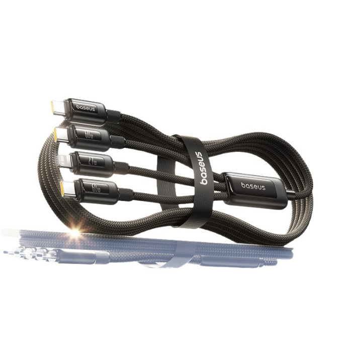 倍思車用數據線三合一充電線PD60W快充一拖三適用蘋果16華爲安卓t