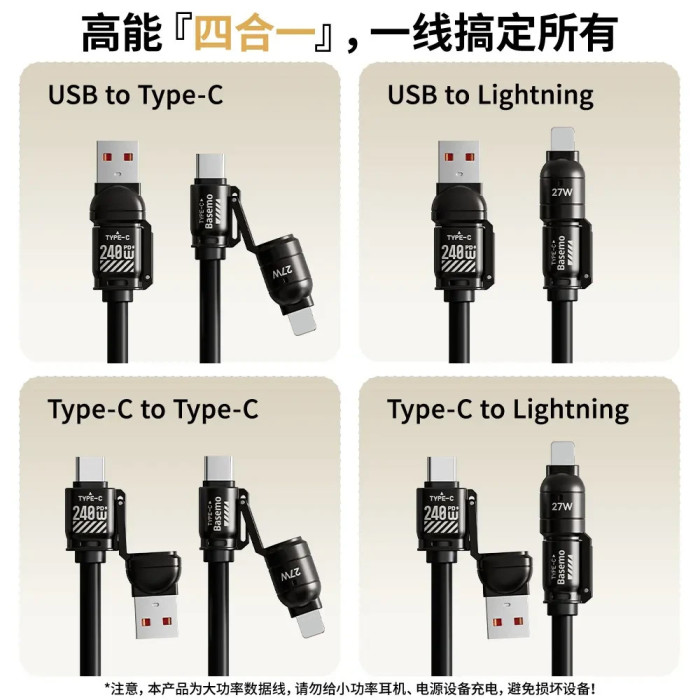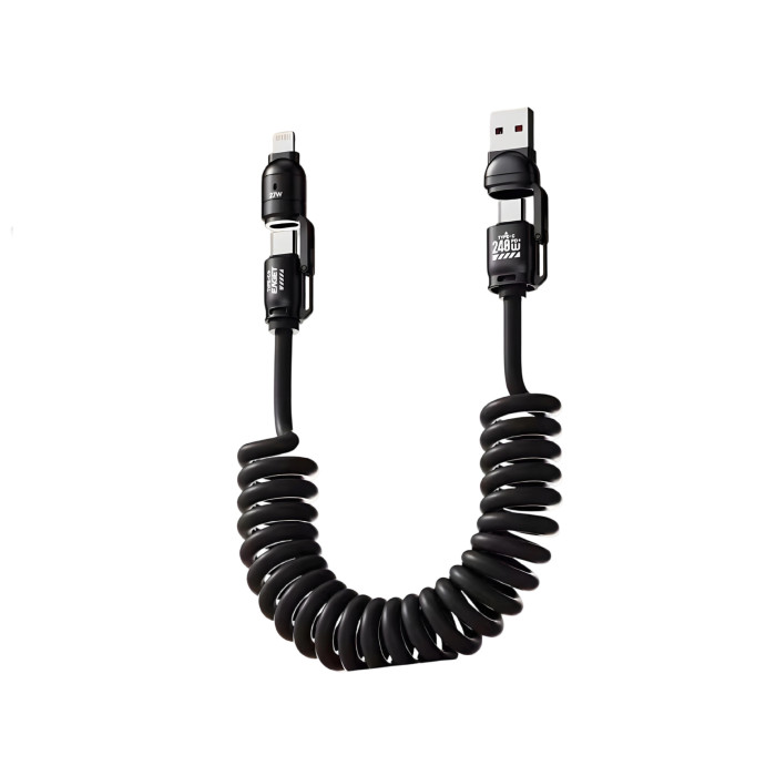 四合一彈簧240W香薰快充線適用於蘋果安卓typec數據線車用投影