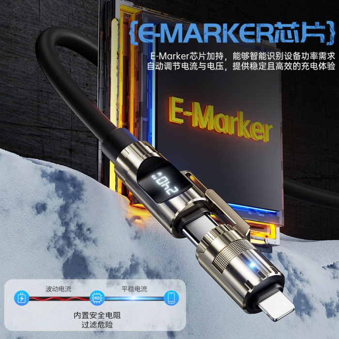 【實時數顯】二拖二240W超級快充車用數據線閃充四合一手機充電線