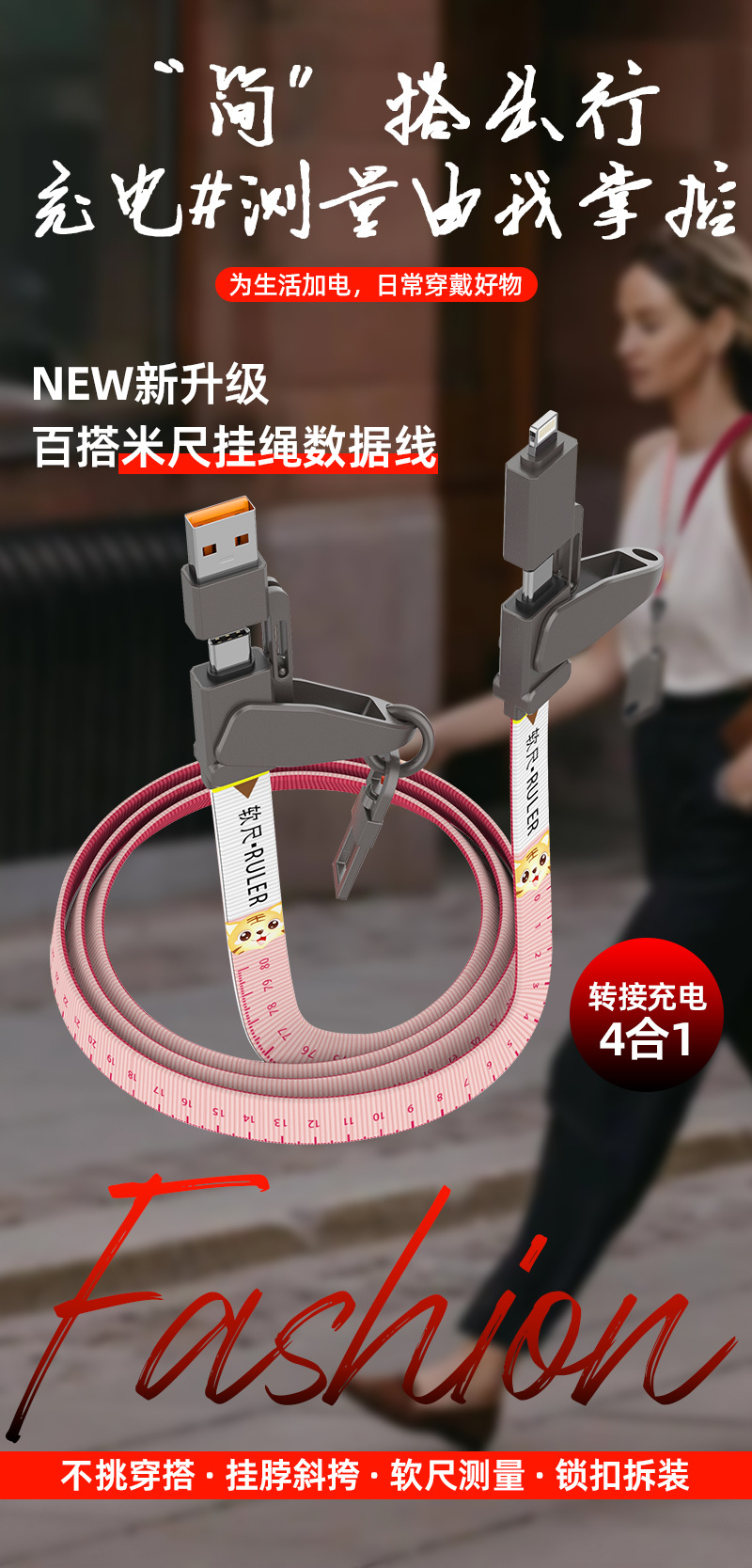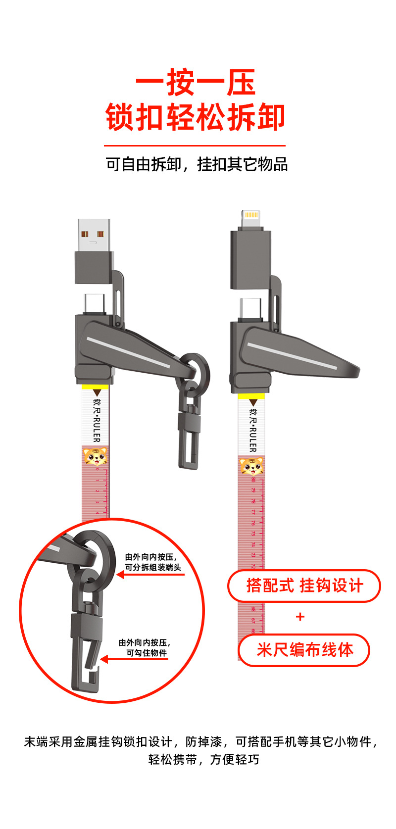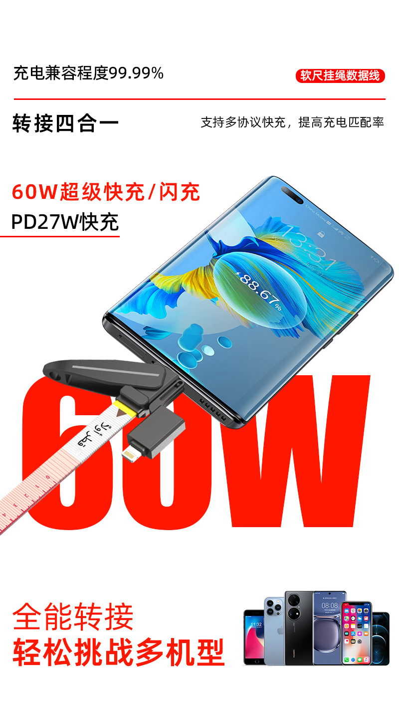 27W超級快充四合一機甲數據線充電雙Typec快充65W充電線