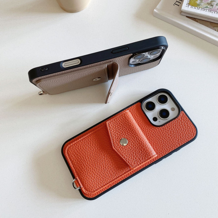 適用蘋果17手機殼iPhone13promax荔枝紋真皮手感卡包插卡手機殼15