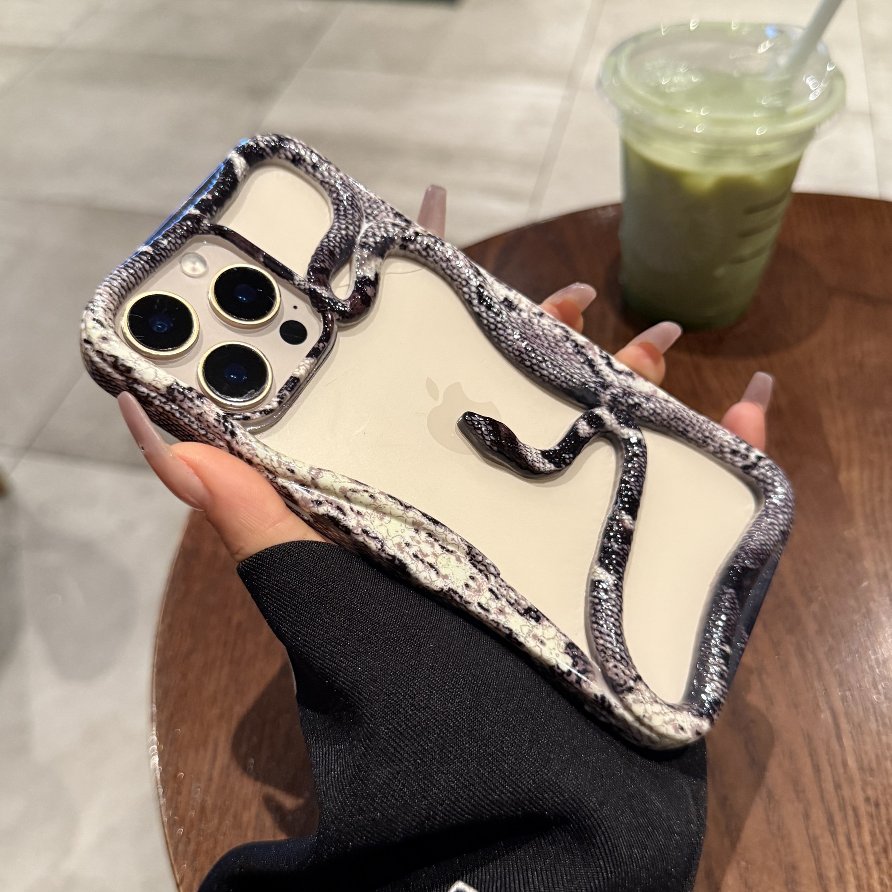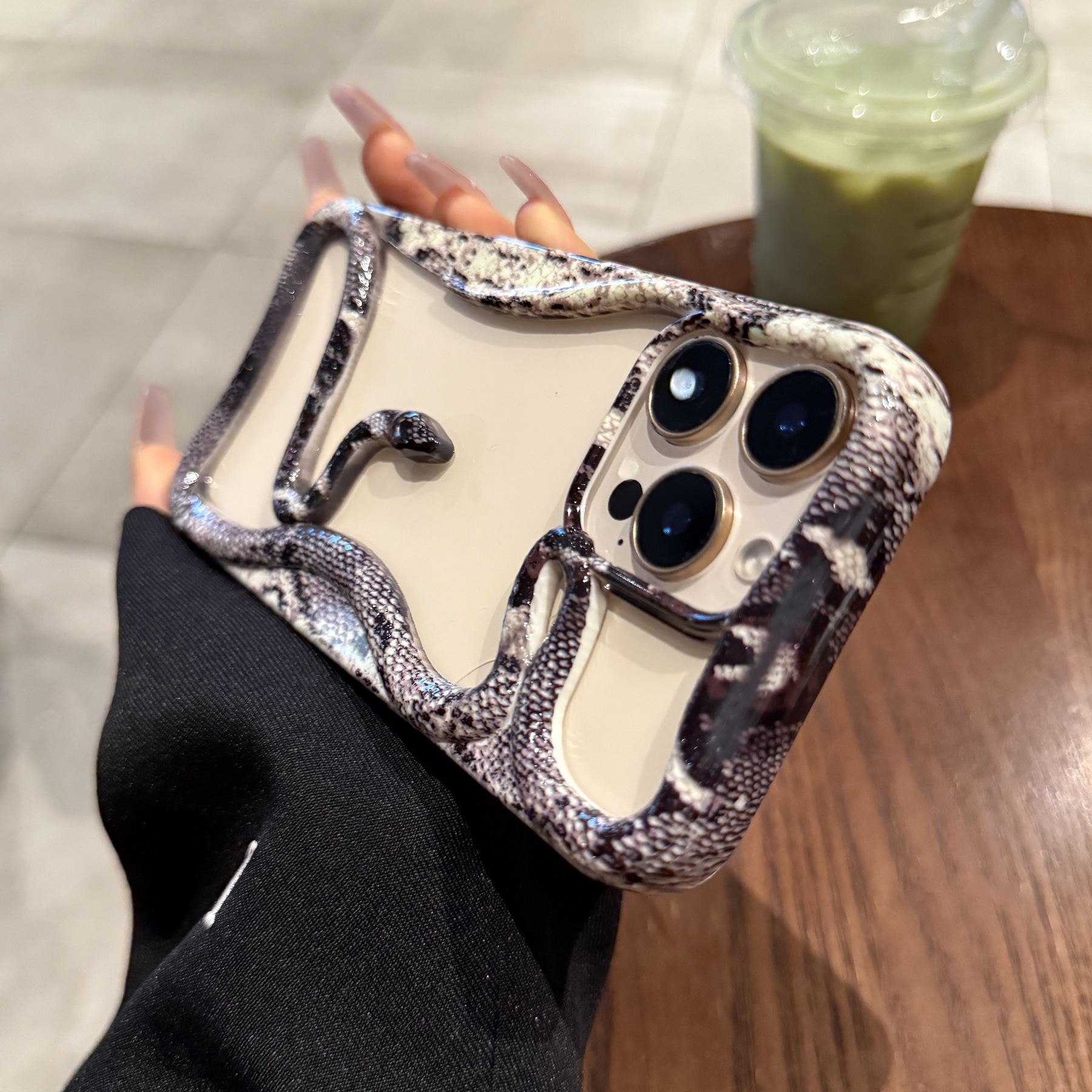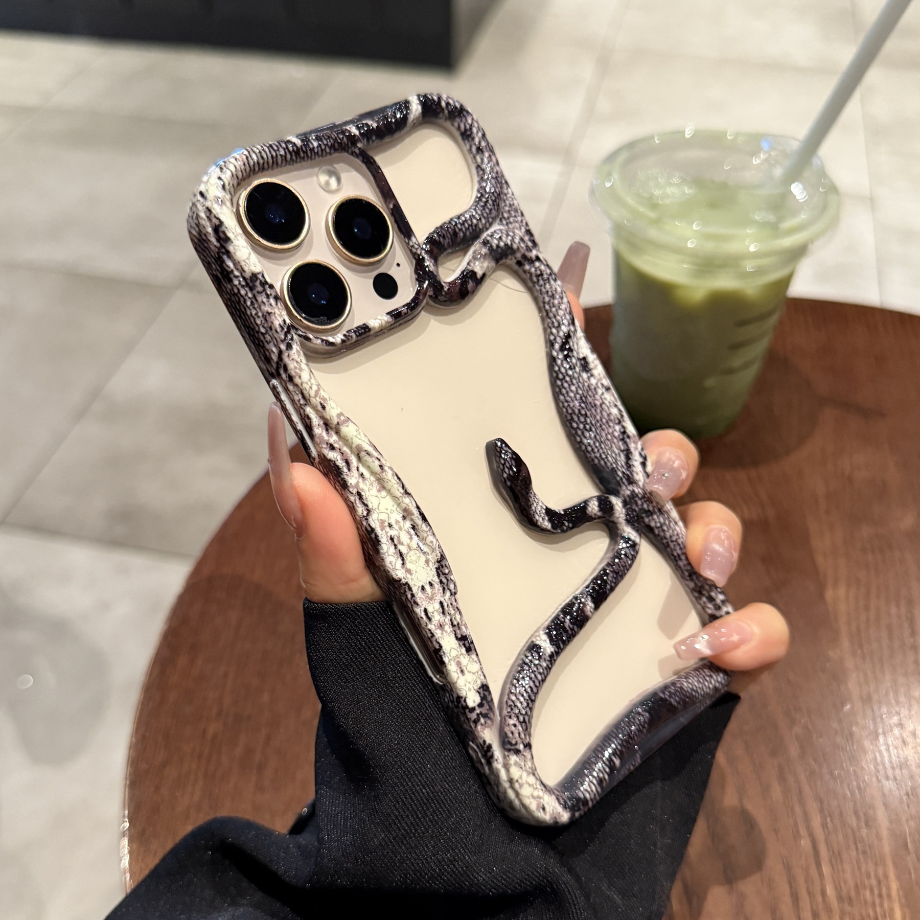 適用蘋果16ProMax立體水貼縷空蛇紋手機殼iPhone15散熱歐美保護套