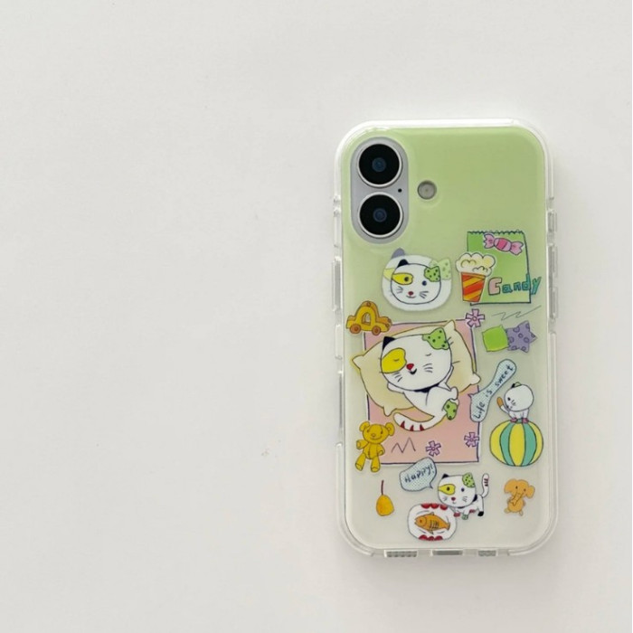 小清新暈染綠色貓咪適用iphone16promax手機殼蘋果15/14/13max女
