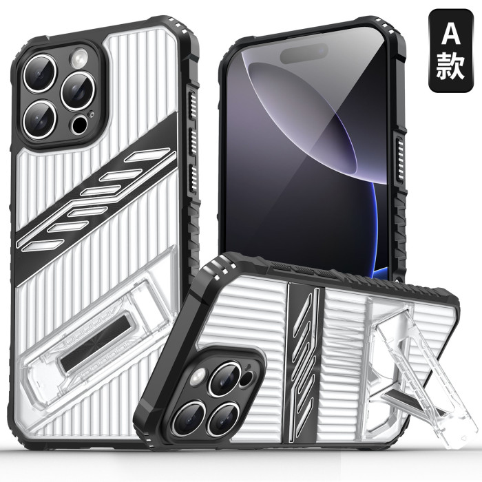 適用iPhone16ProMax戰影手機殼蘋果15Pro透明14支架防摔13保護套