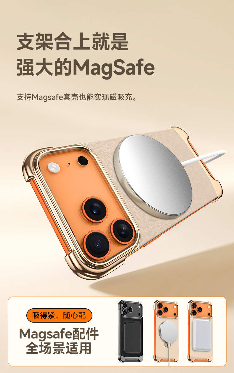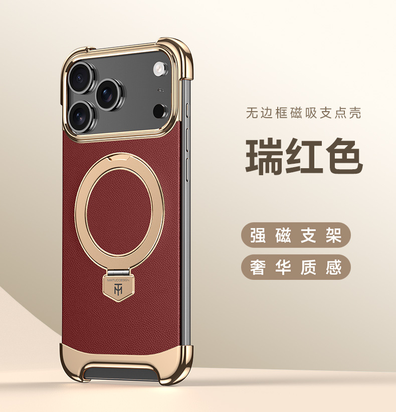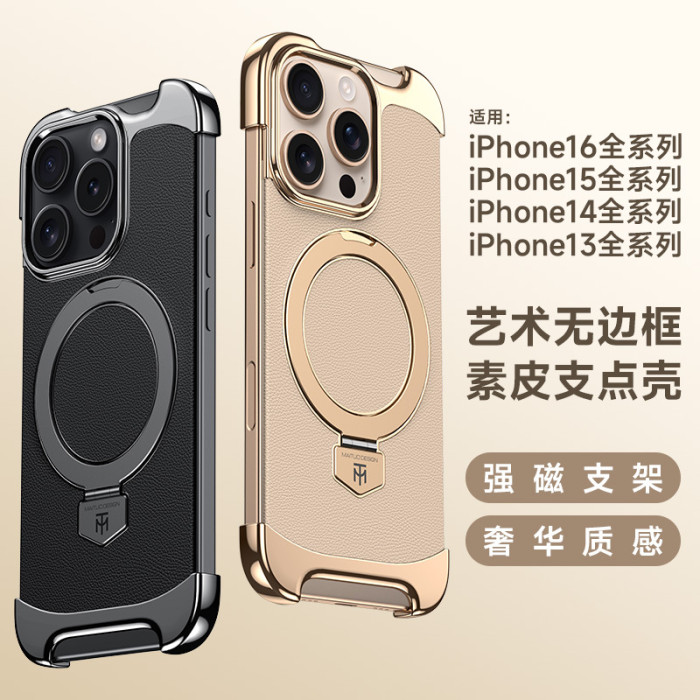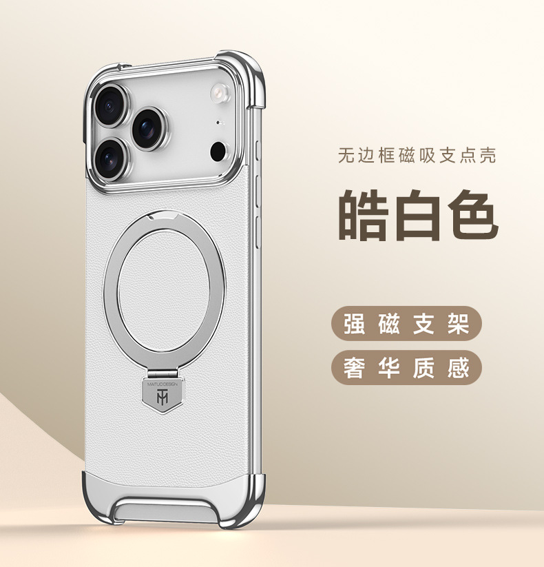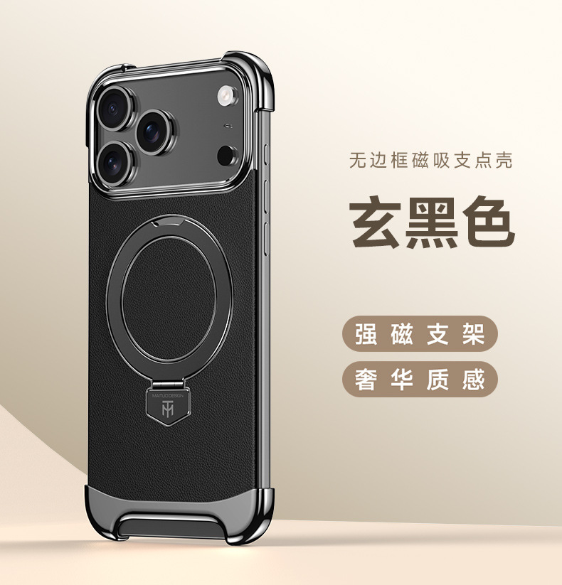 支點殼適用蘋果17Promax素皮磁吸支架手機殼iPhone16無邊電鍍素皮