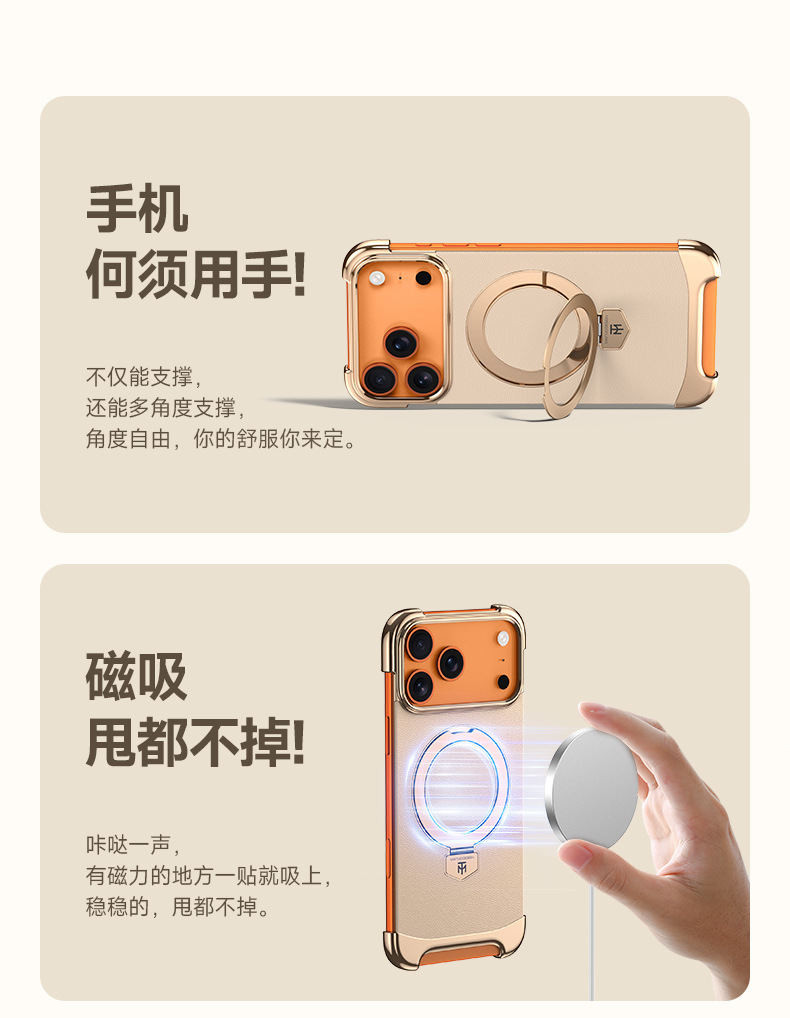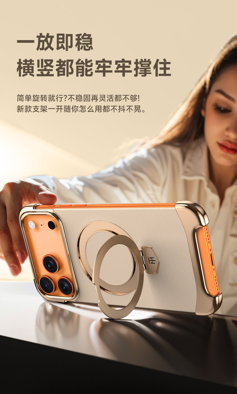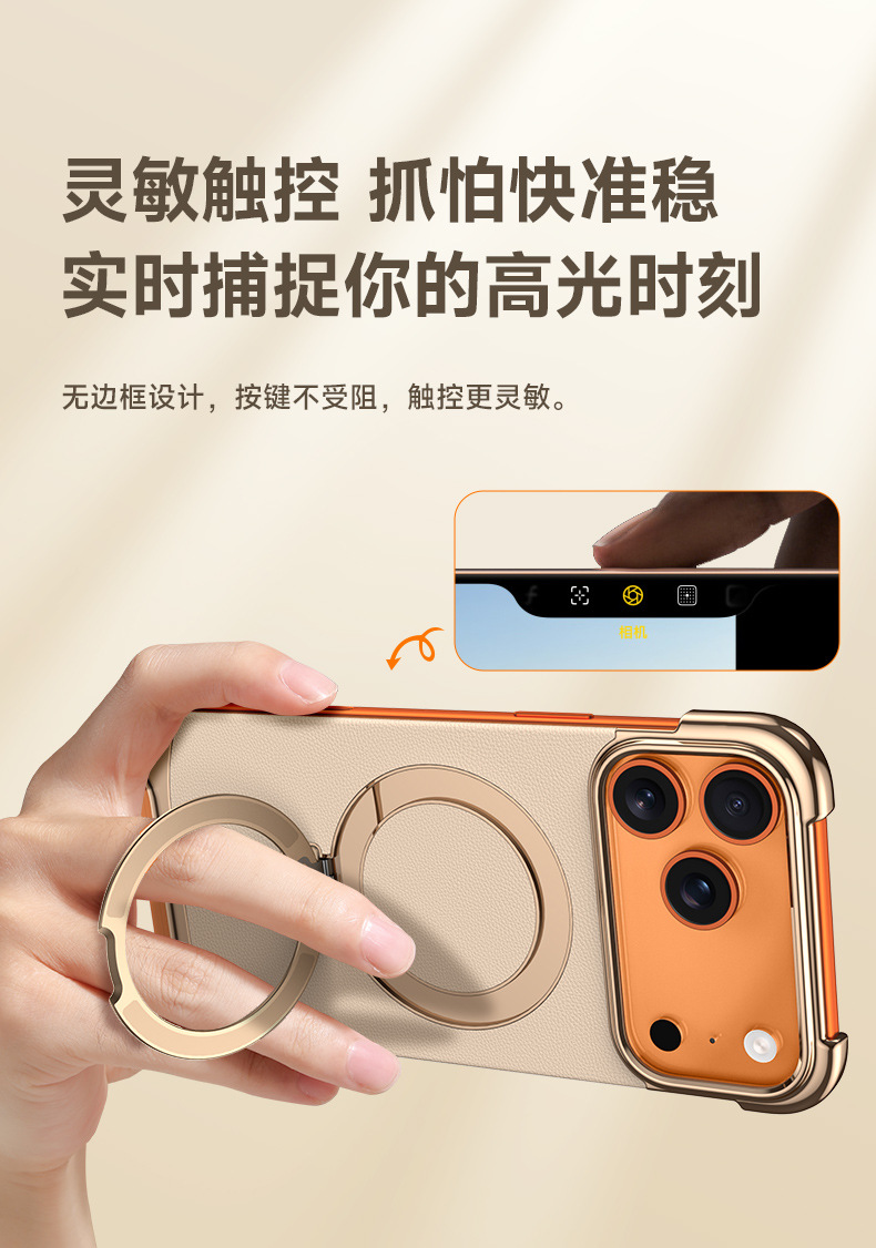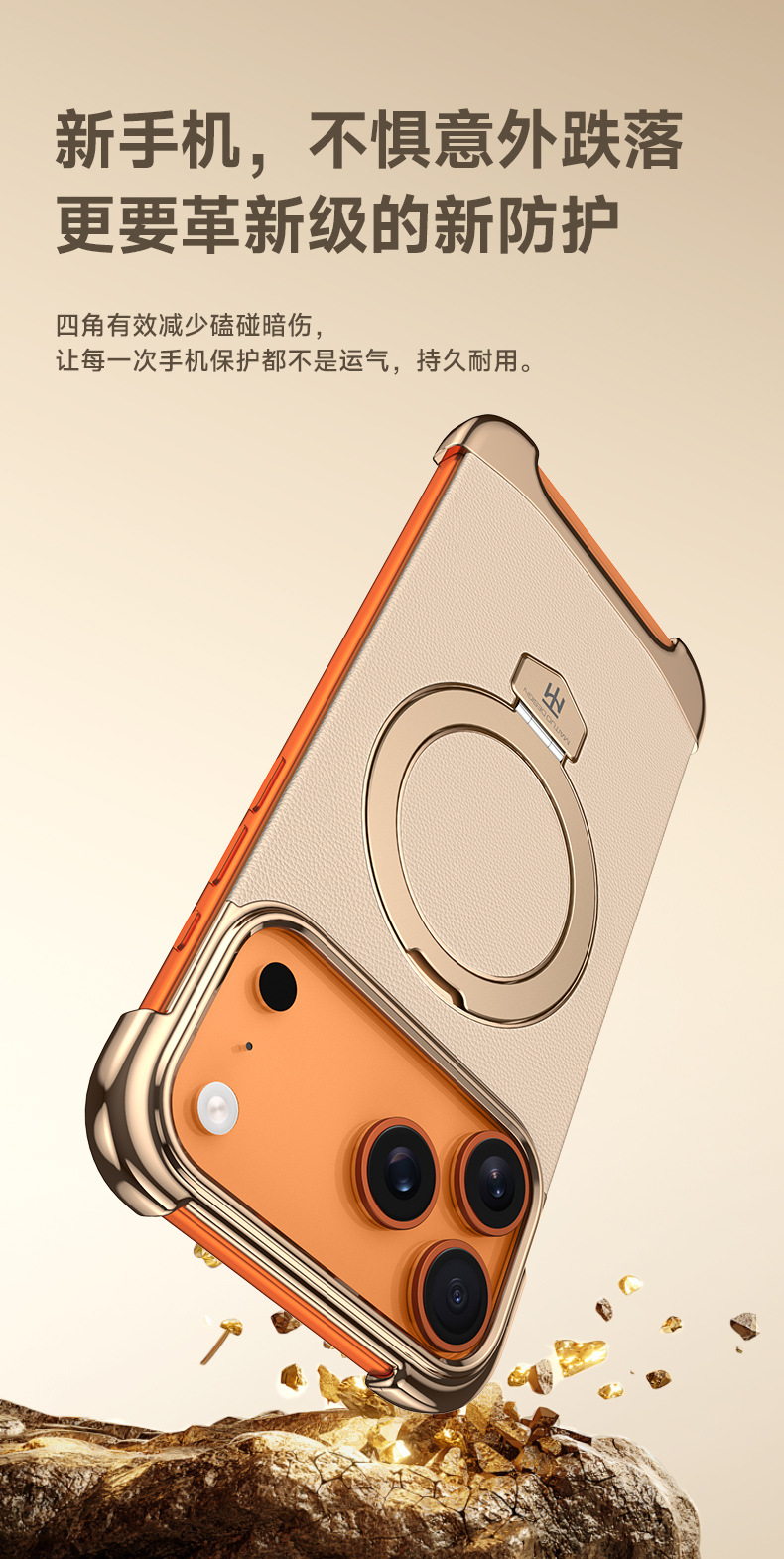 支點殼適用蘋果17Promax素皮磁吸支架手機殼iPhone16無邊電鍍素皮