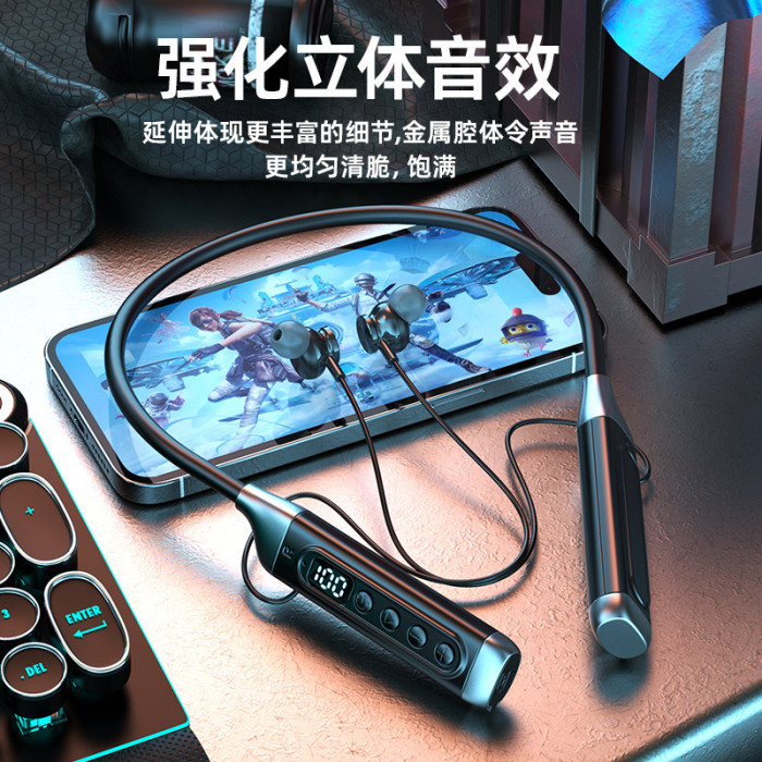 新款5.4藍牙耳機頸掛式運動男女變聲K歌音樂插卡安卓通用
