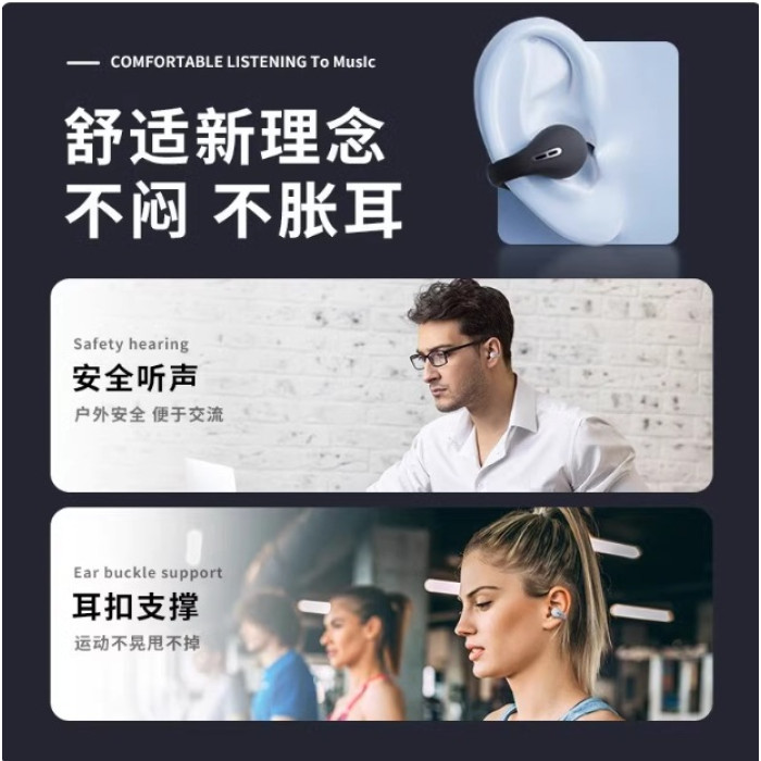 真骨傳導夾耳式藍牙耳機2024新款不入耳無線運動跑步適用於華爲