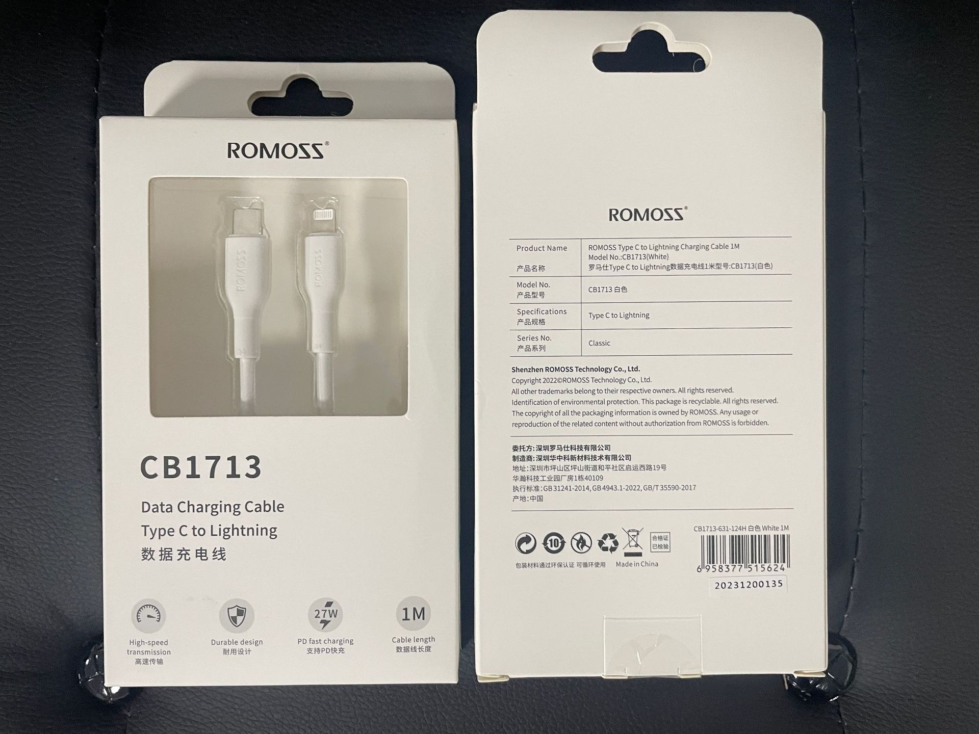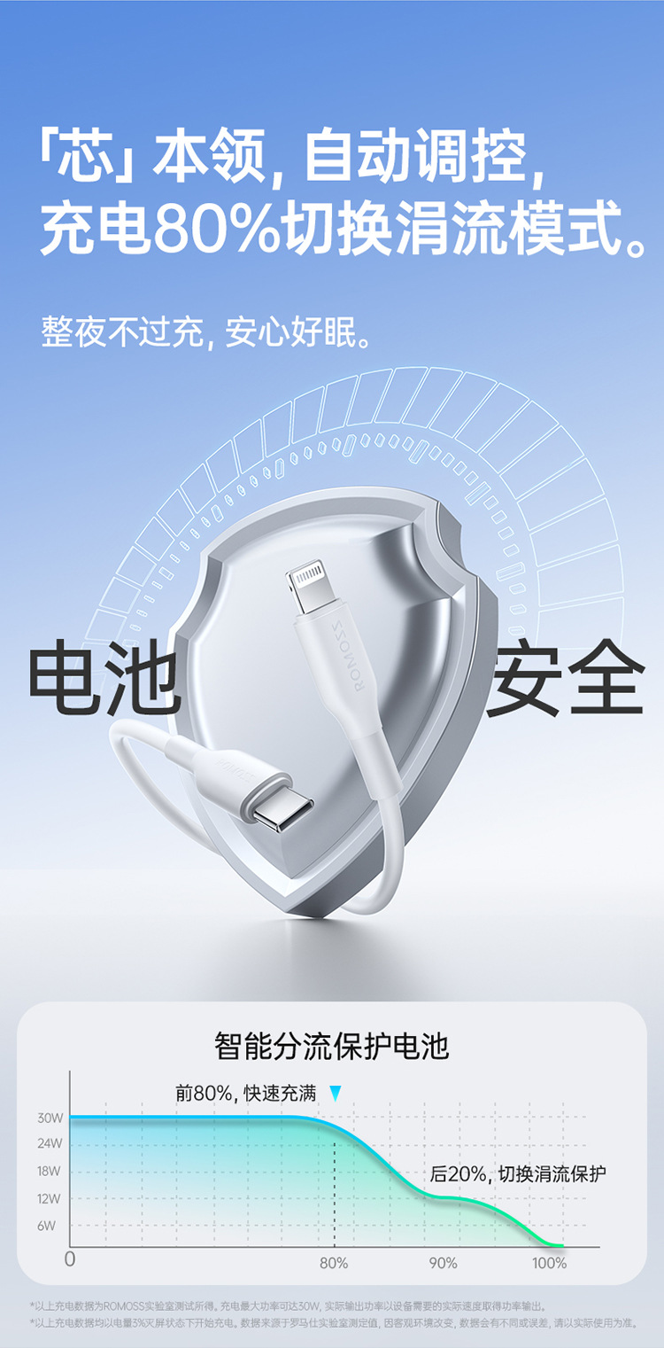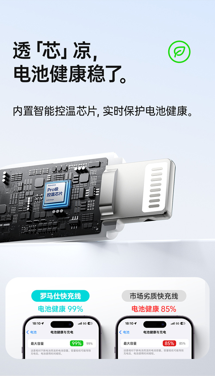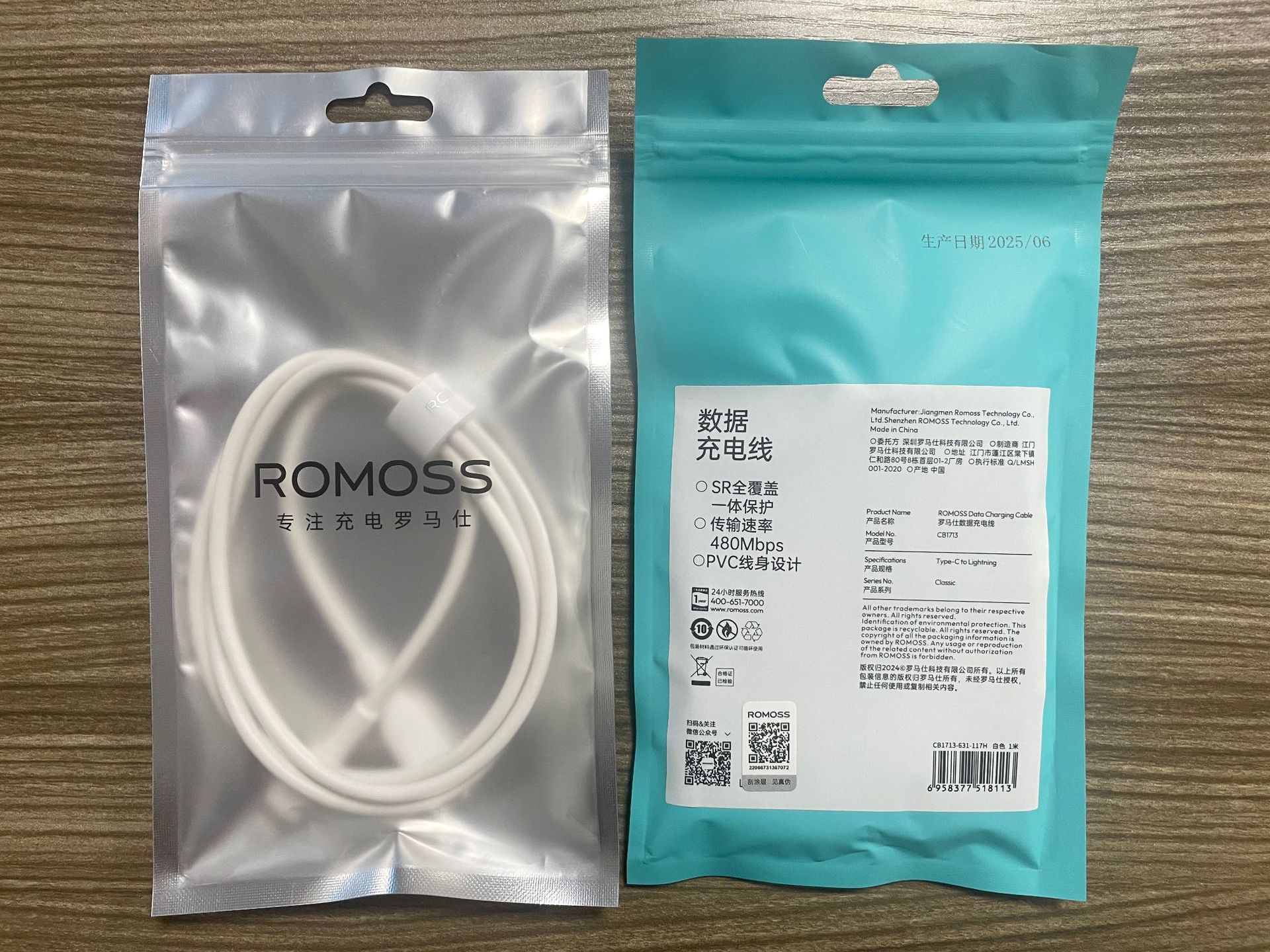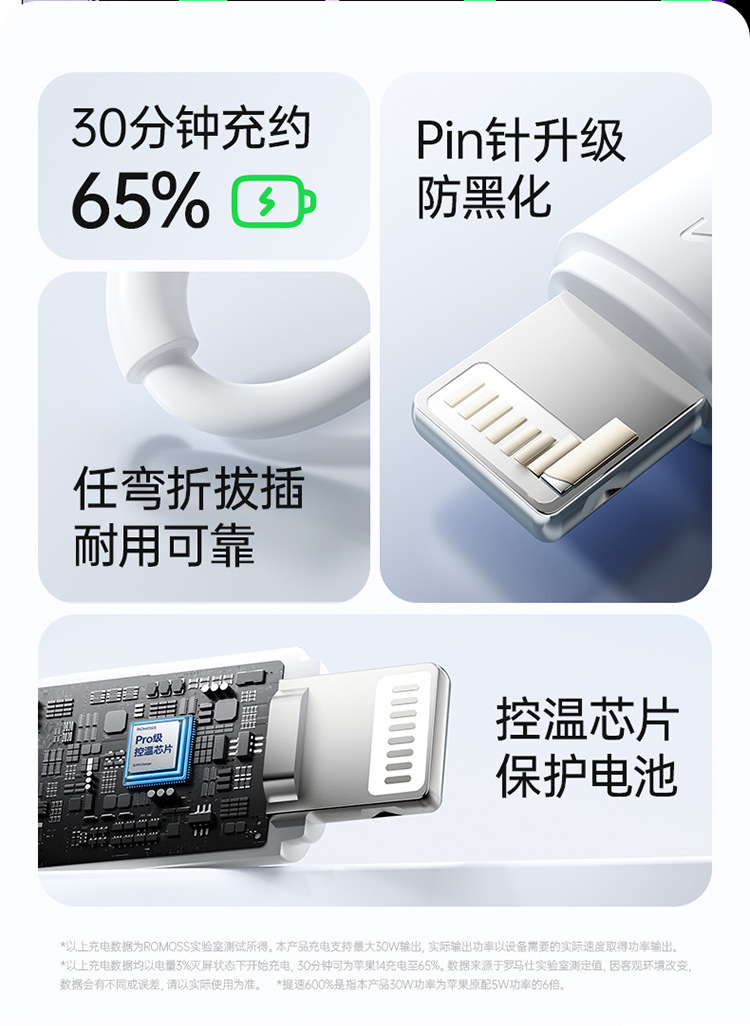 ROMOSS/羅馬仕PD20/30數據線C轉lightning適用蘋果手機快充充電線