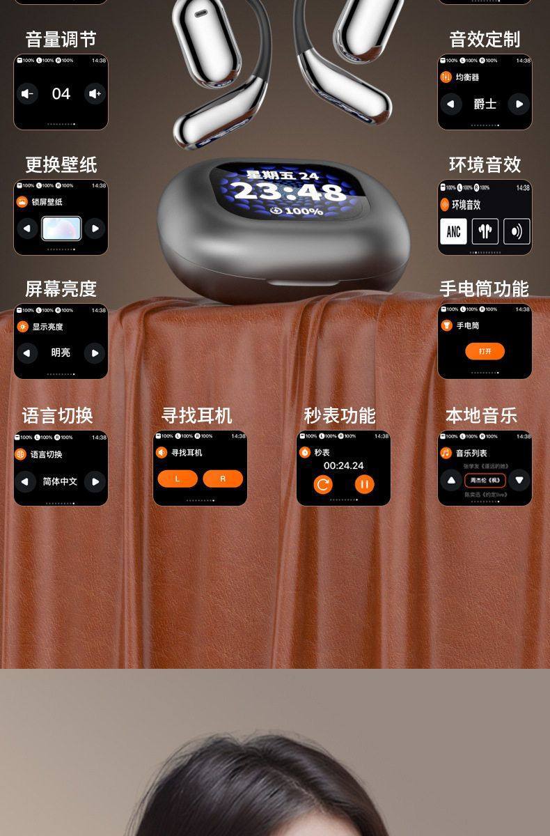 爆款Q16pro高品質智能藍牙耳機高清屏可觸控無線智能藍牙耳機