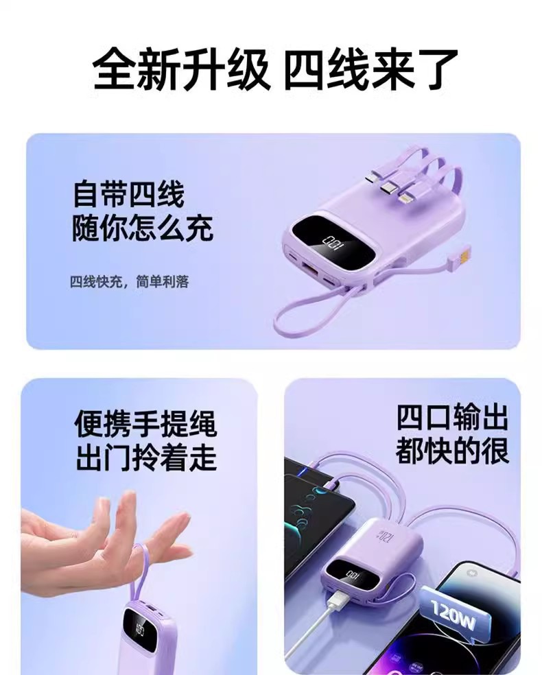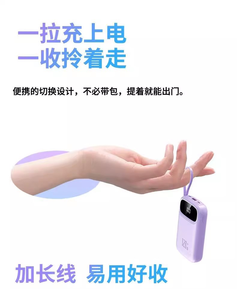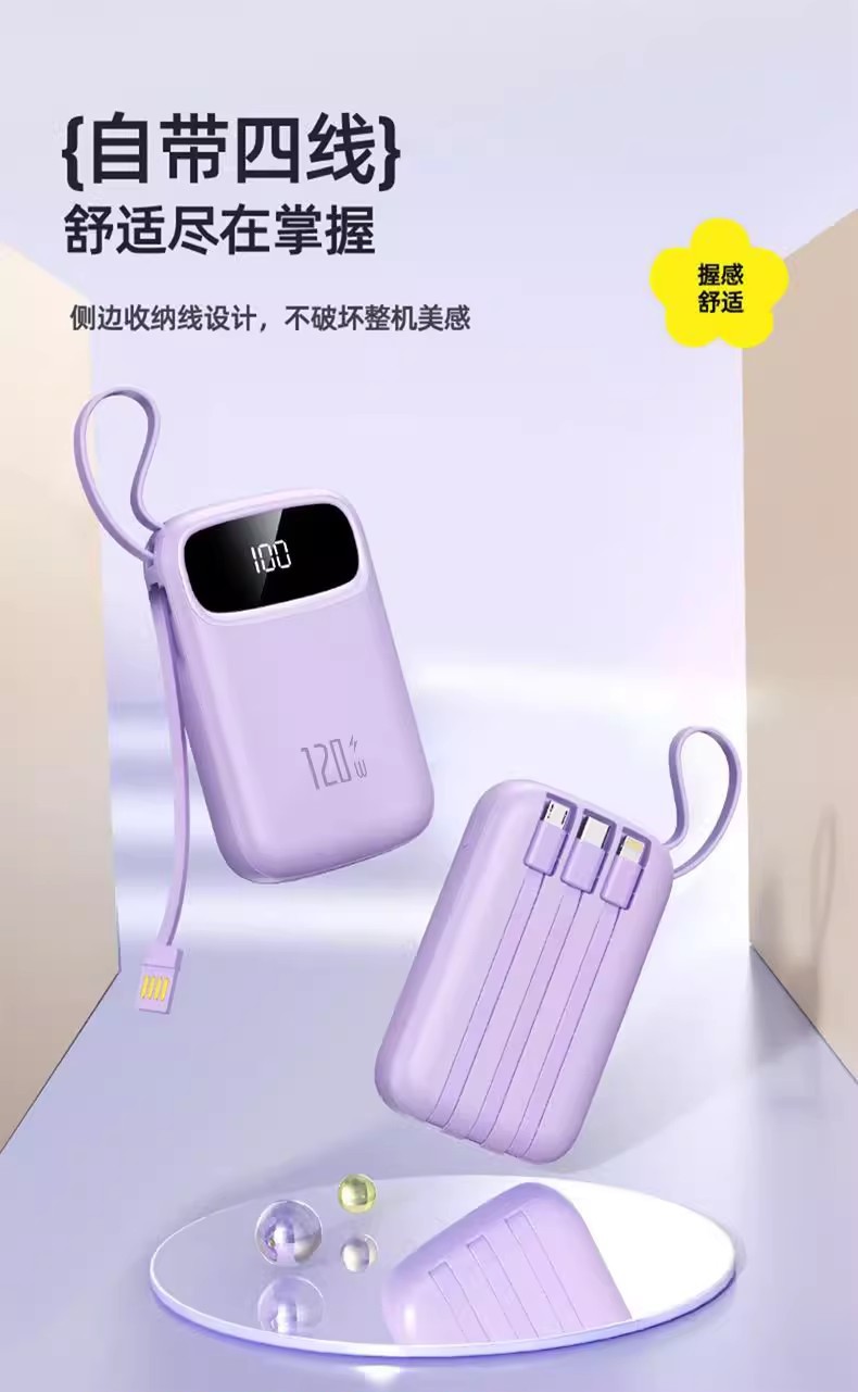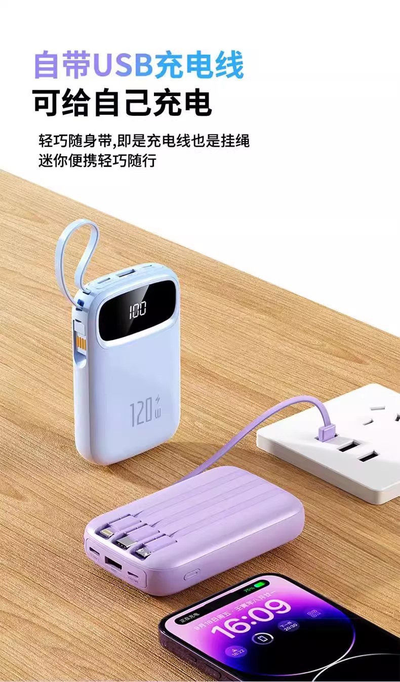3c認證行動電源自帶線20000安培禮品行動電源快充大容量