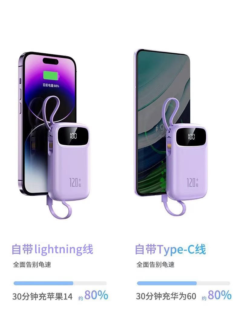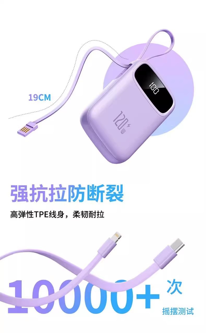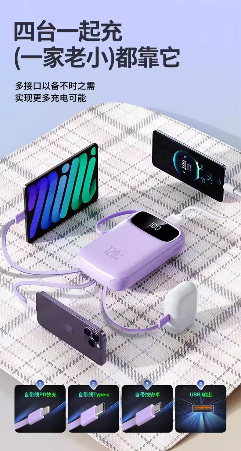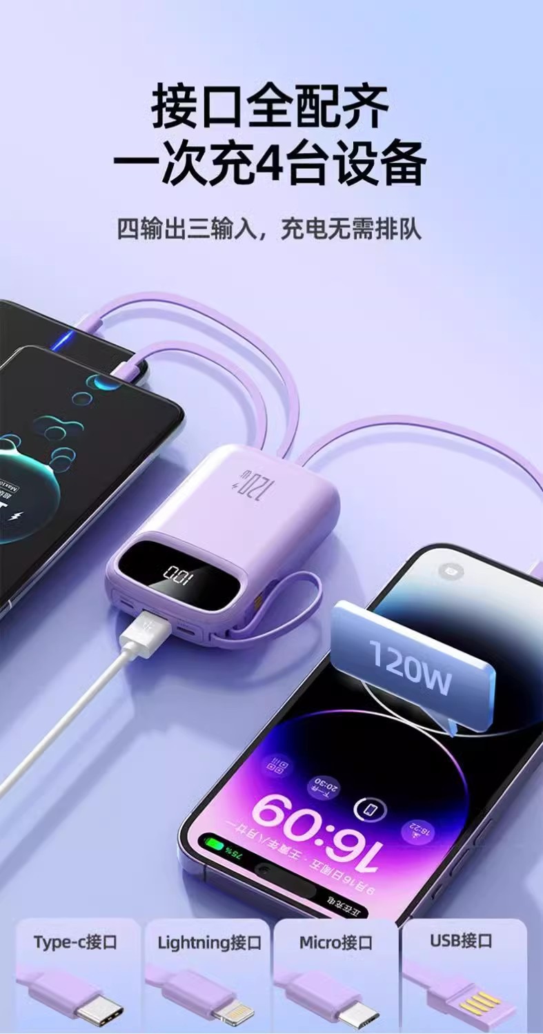 3c認證行動電源自帶線20000安培禮品行動電源快充大容量