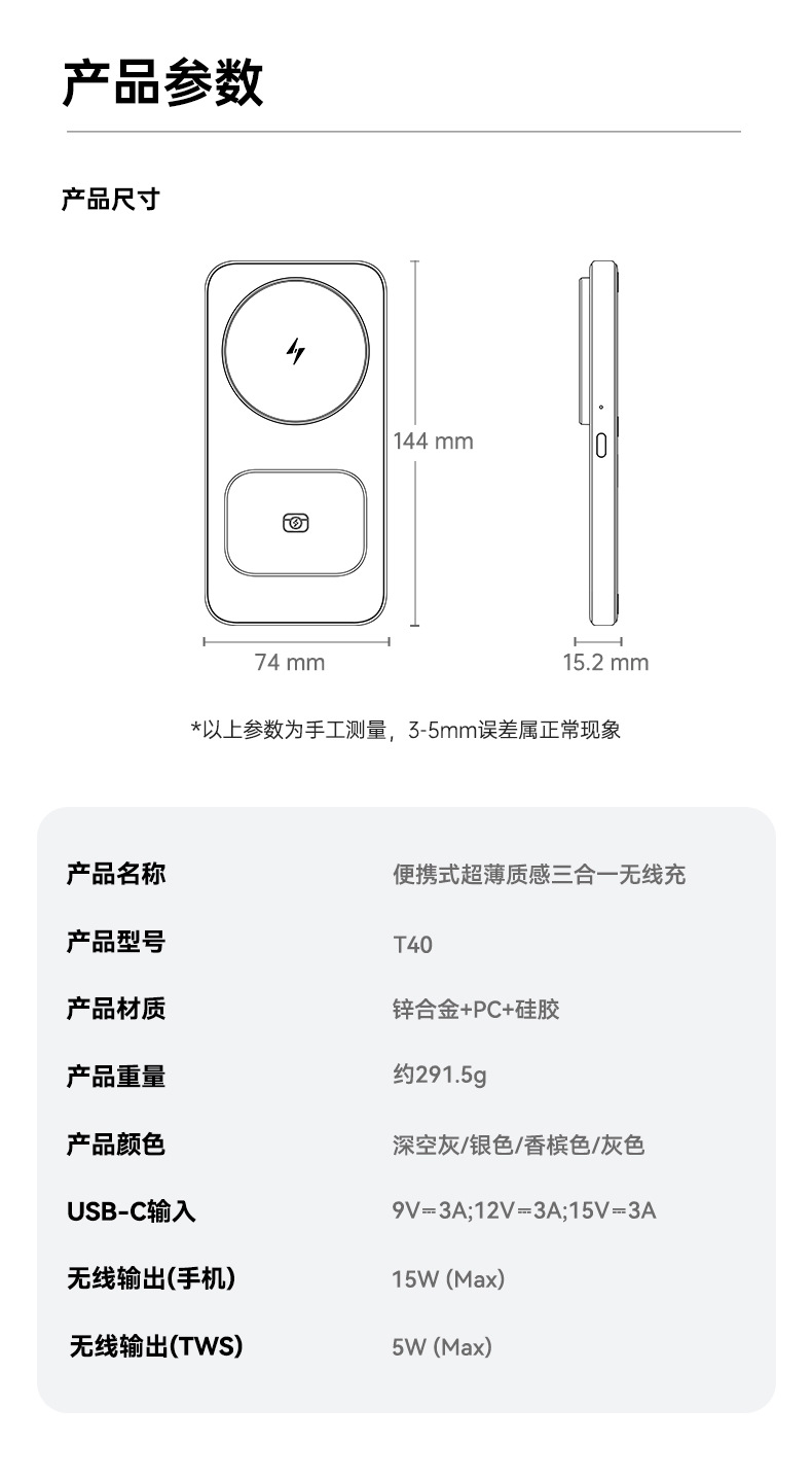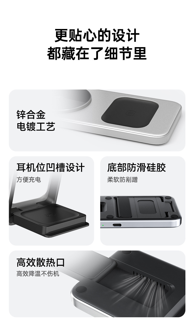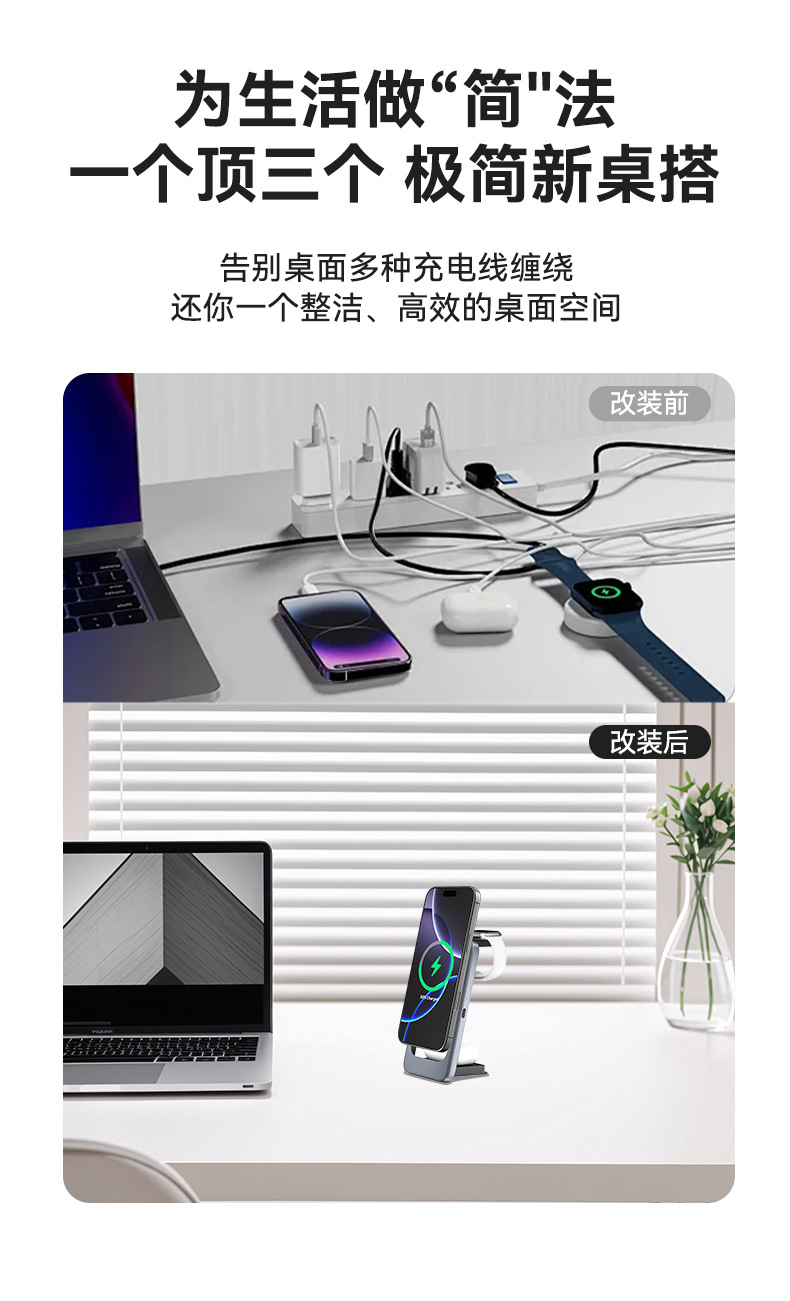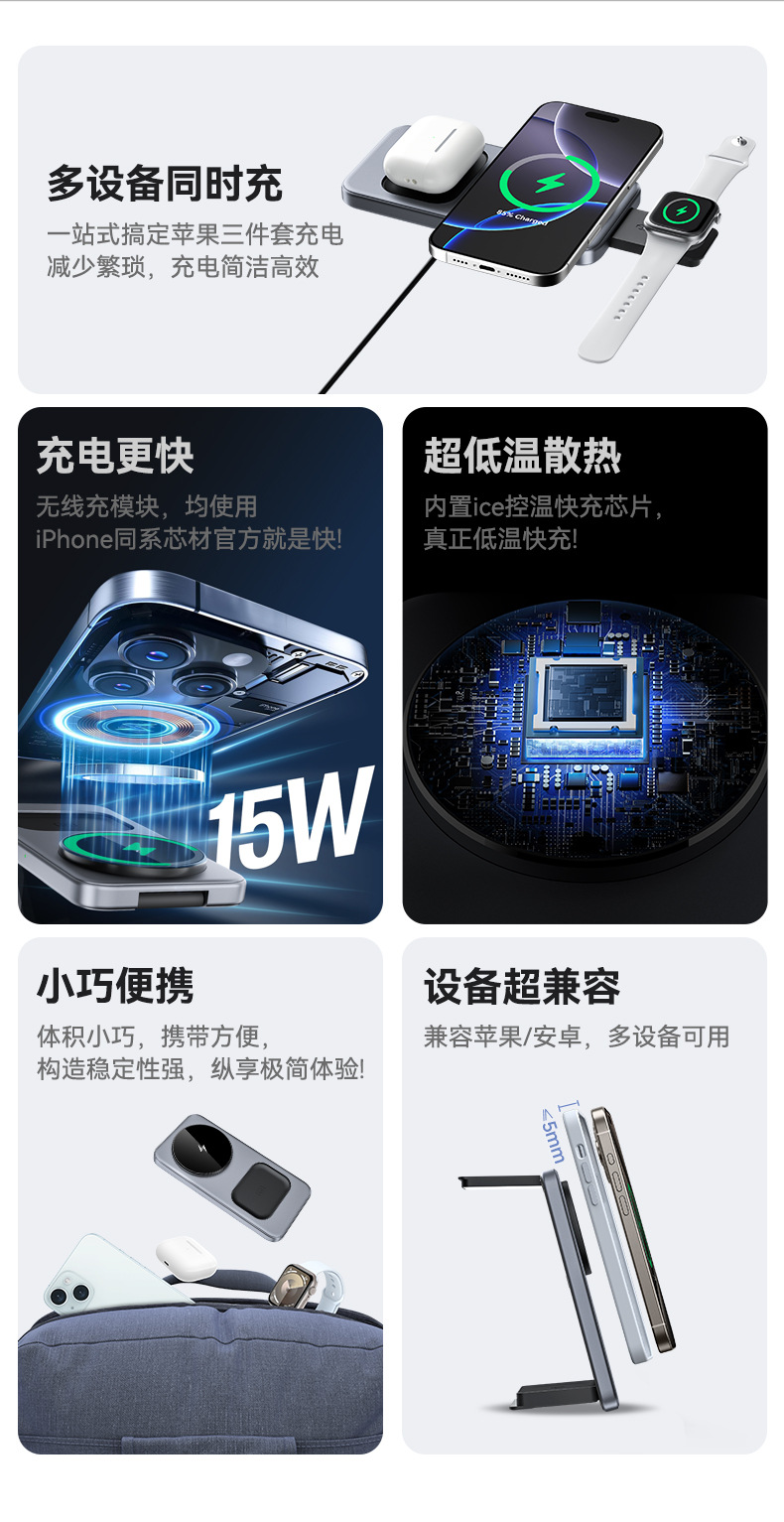 耳機手錶手機三合一桌面磁吸無線充可攜式折曡超薄無線充電器