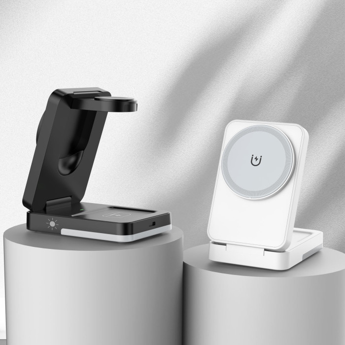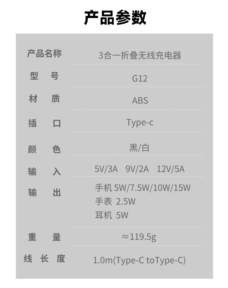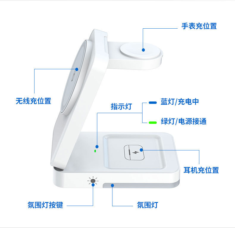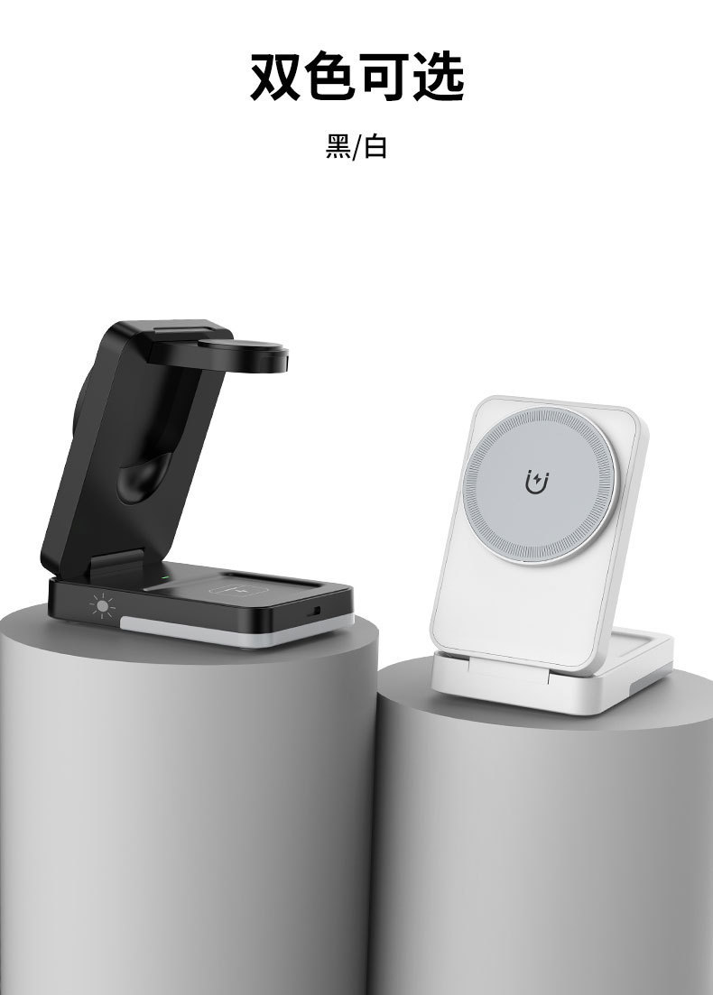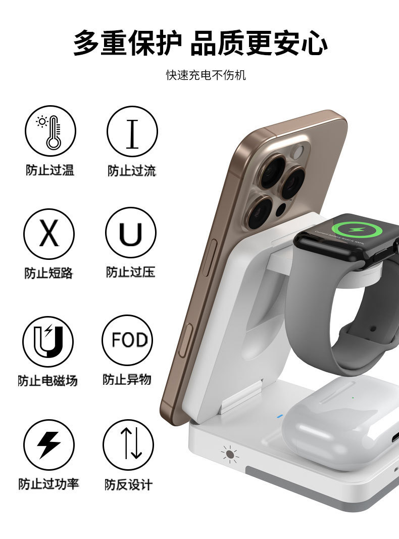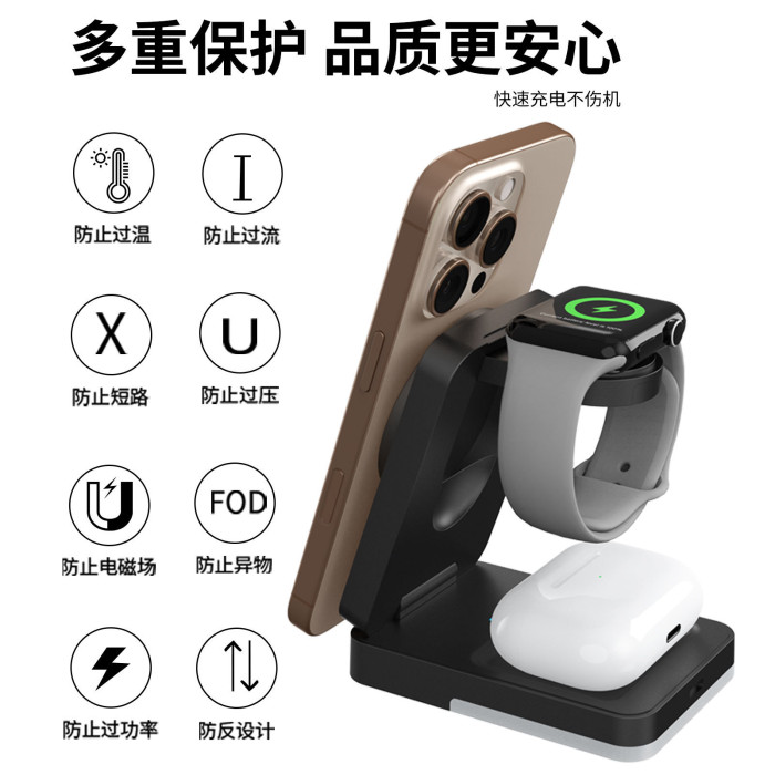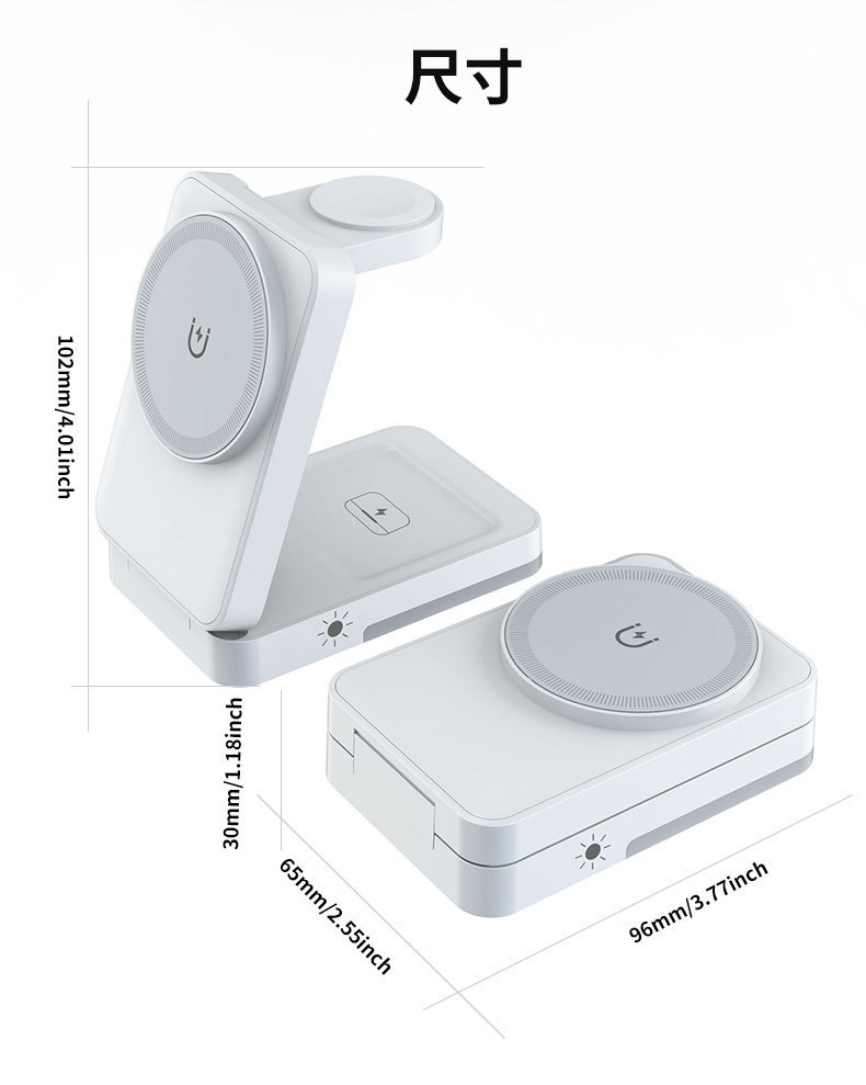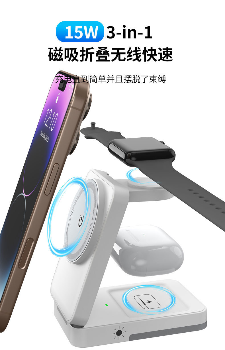 收納折曡磁吸三合一無線充適用於蘋果手機耳機手錶立式無線充電器