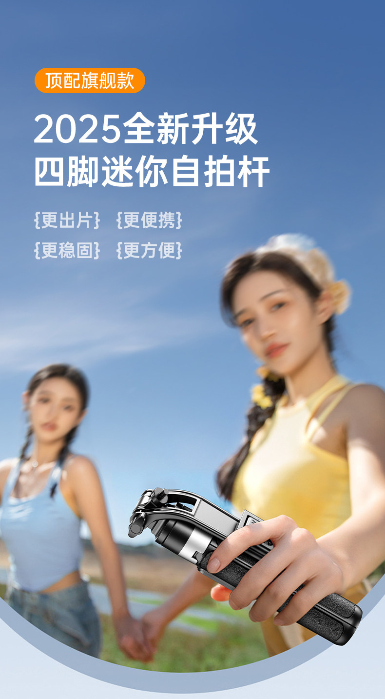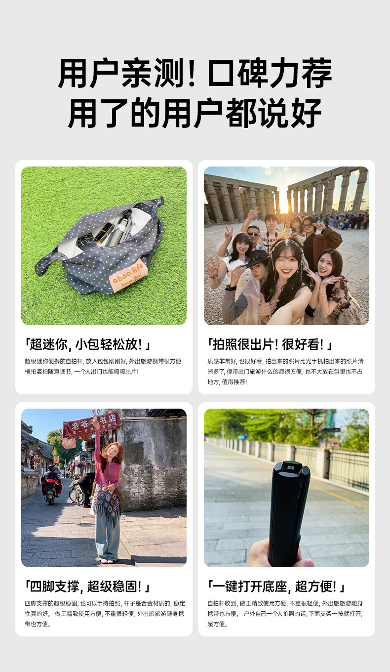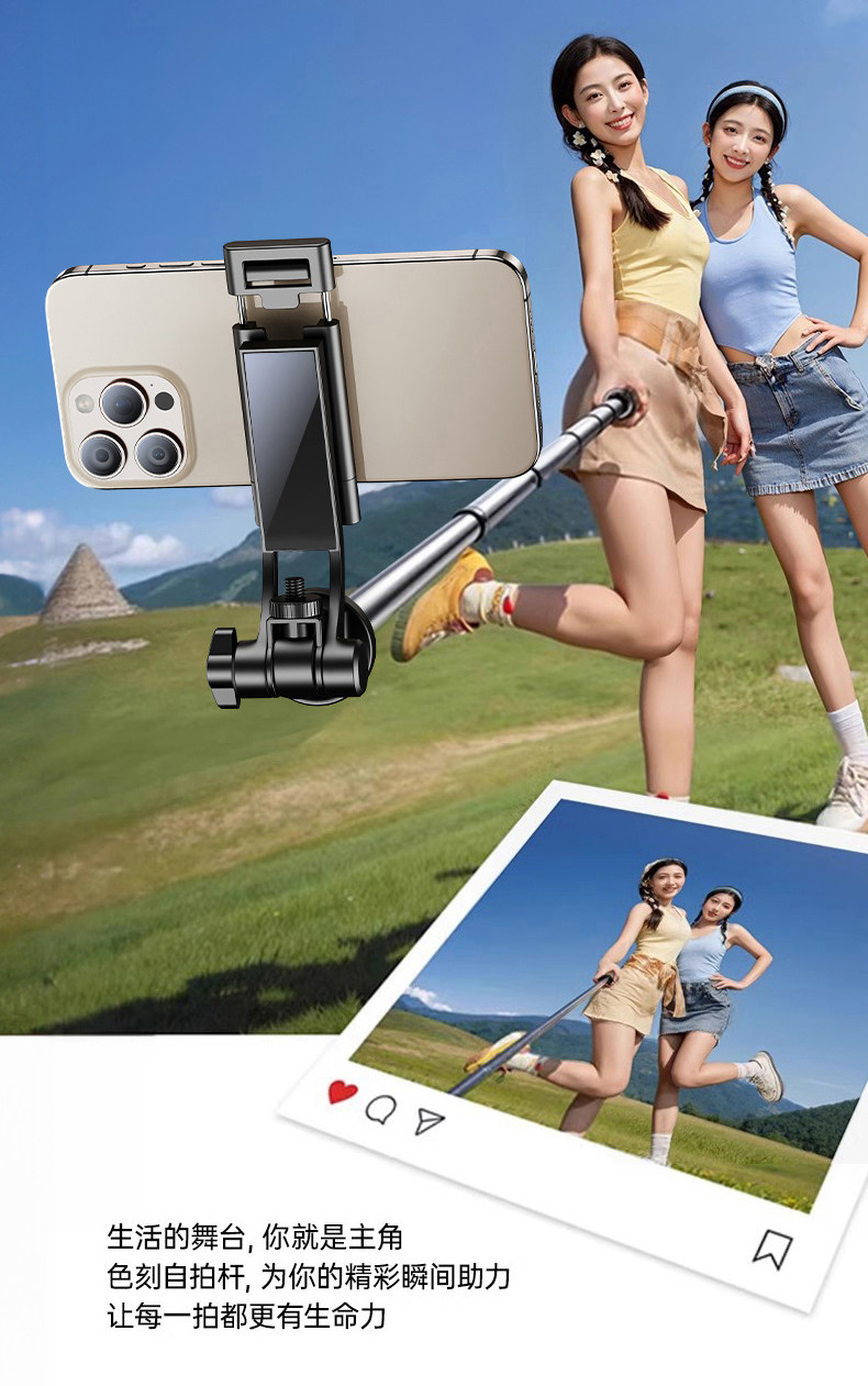 色刻MN C手機自拍桿2025新款通用旅遊可攜式迷你自拍神器拍照360度旋轉手持防抖落地穩定三腳架vlog拍攝mini