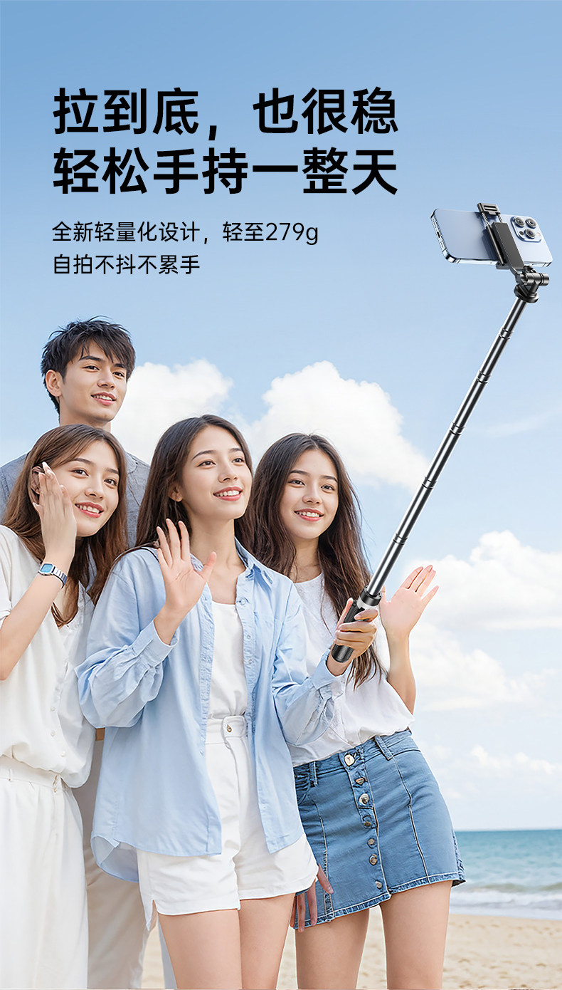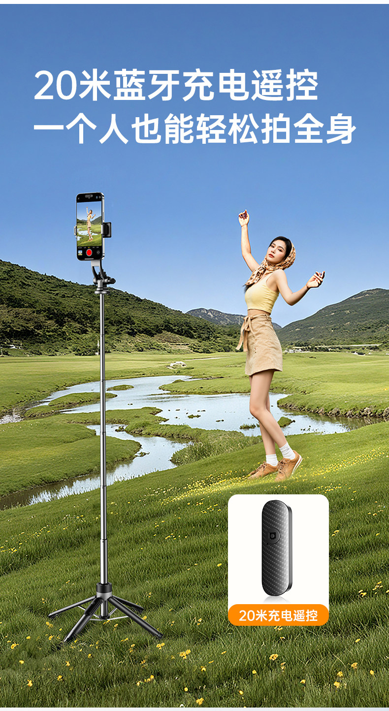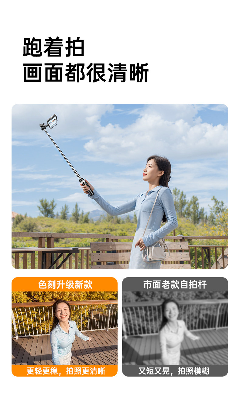 色刻MN C手機自拍桿2025新款通用旅遊可攜式迷你自拍神器拍照360度旋轉手持防抖落地穩定三腳架vlog拍攝mini