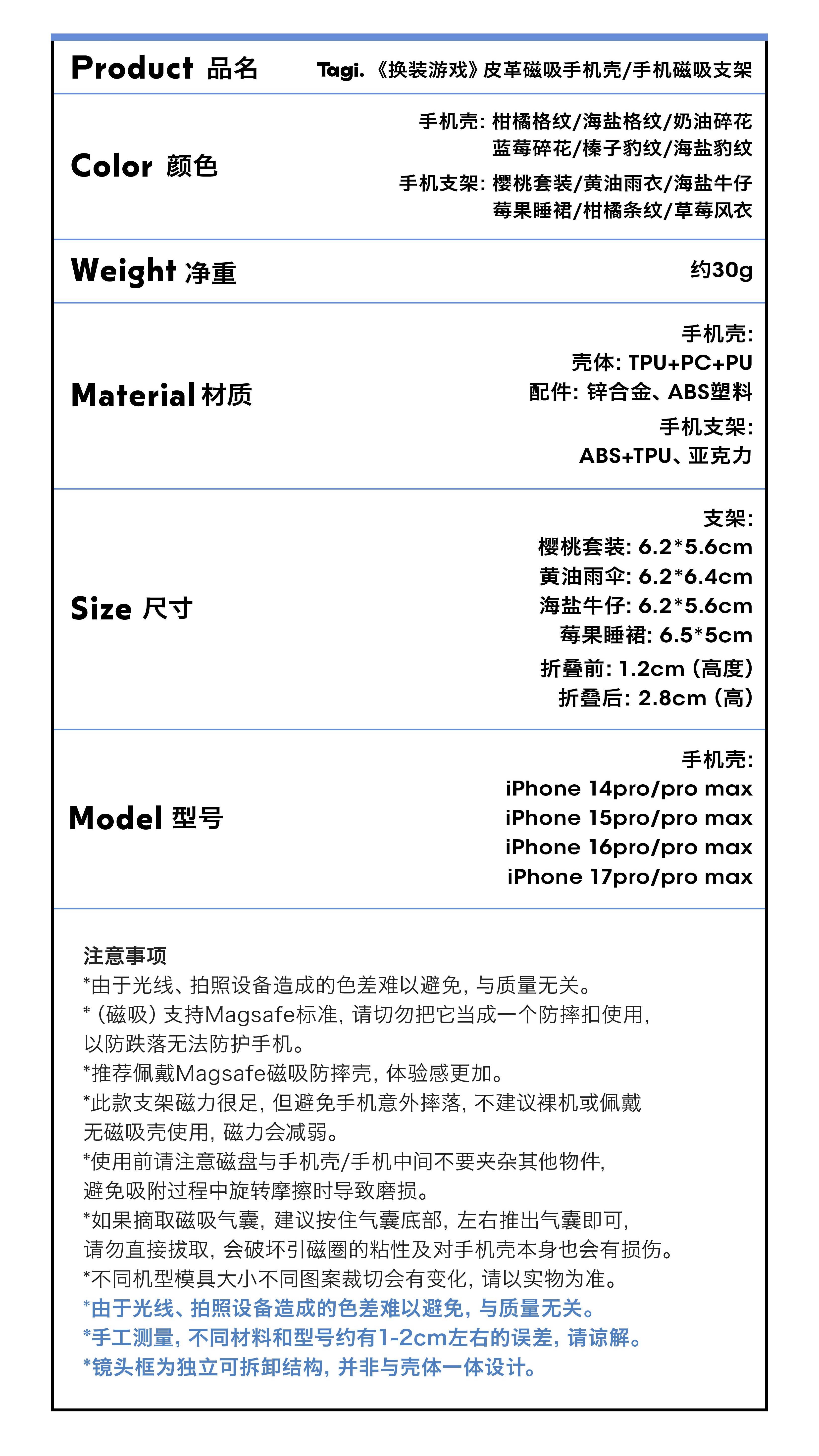 | 型號 | Tagi.《換裝遊戯》皮革磁吸手機殼 |