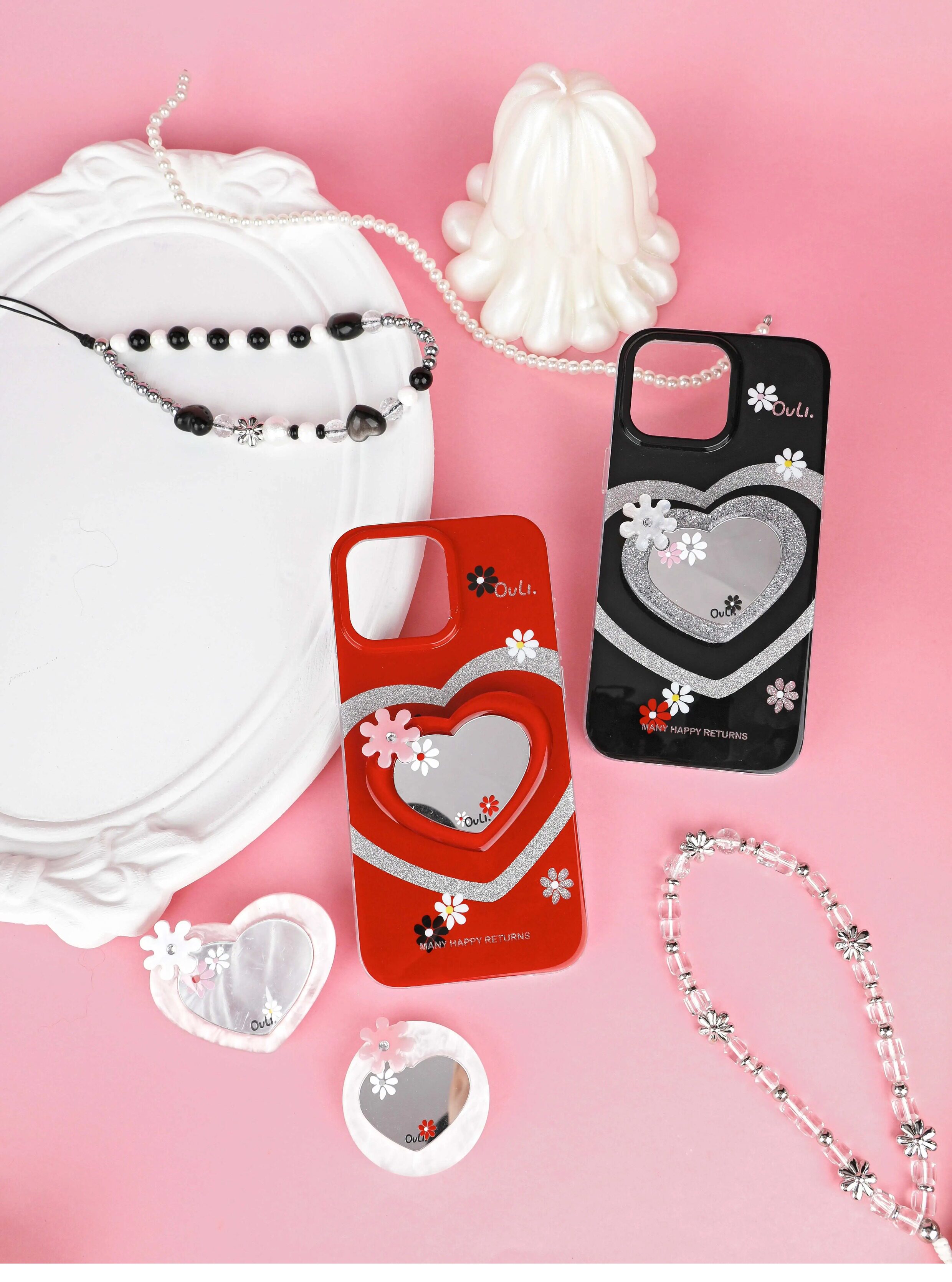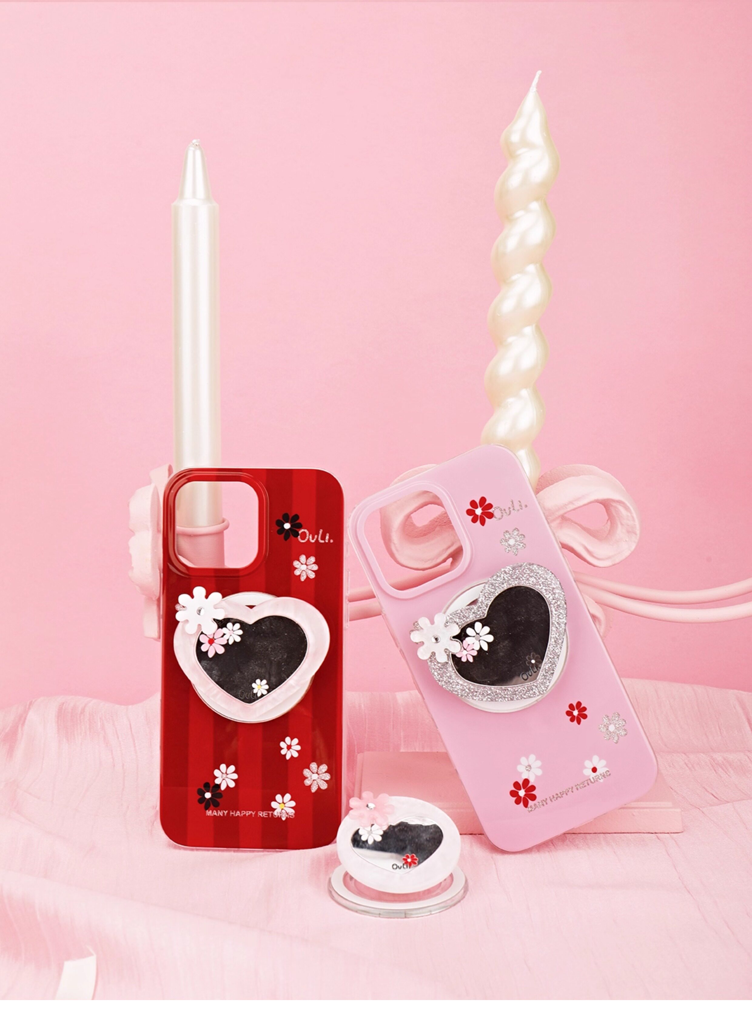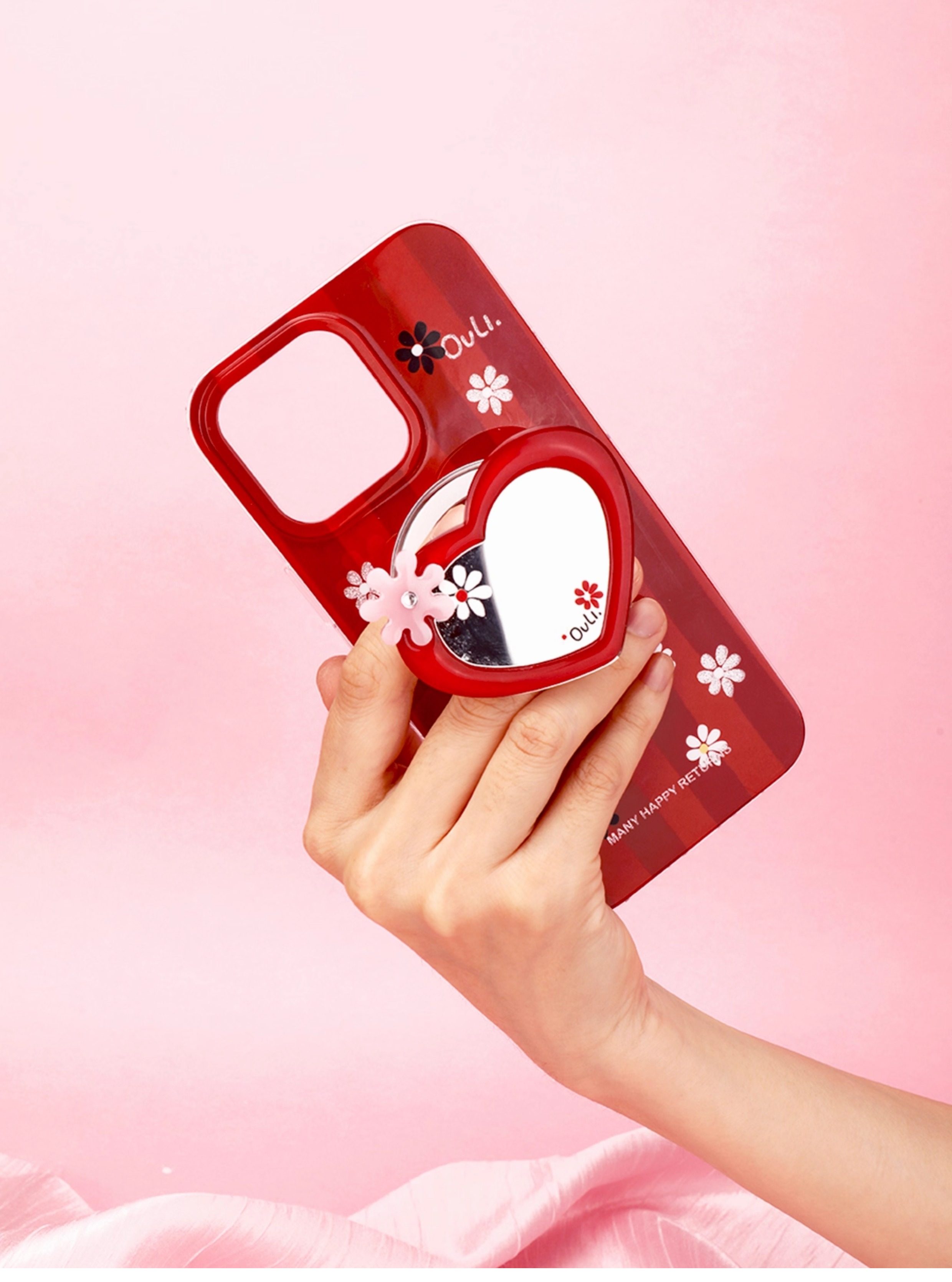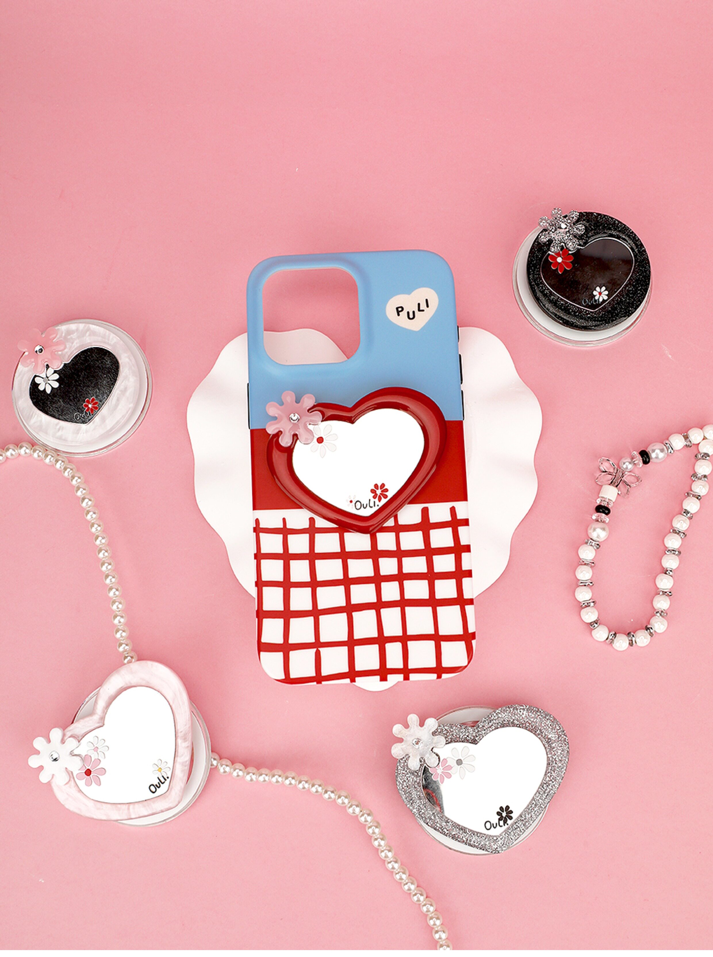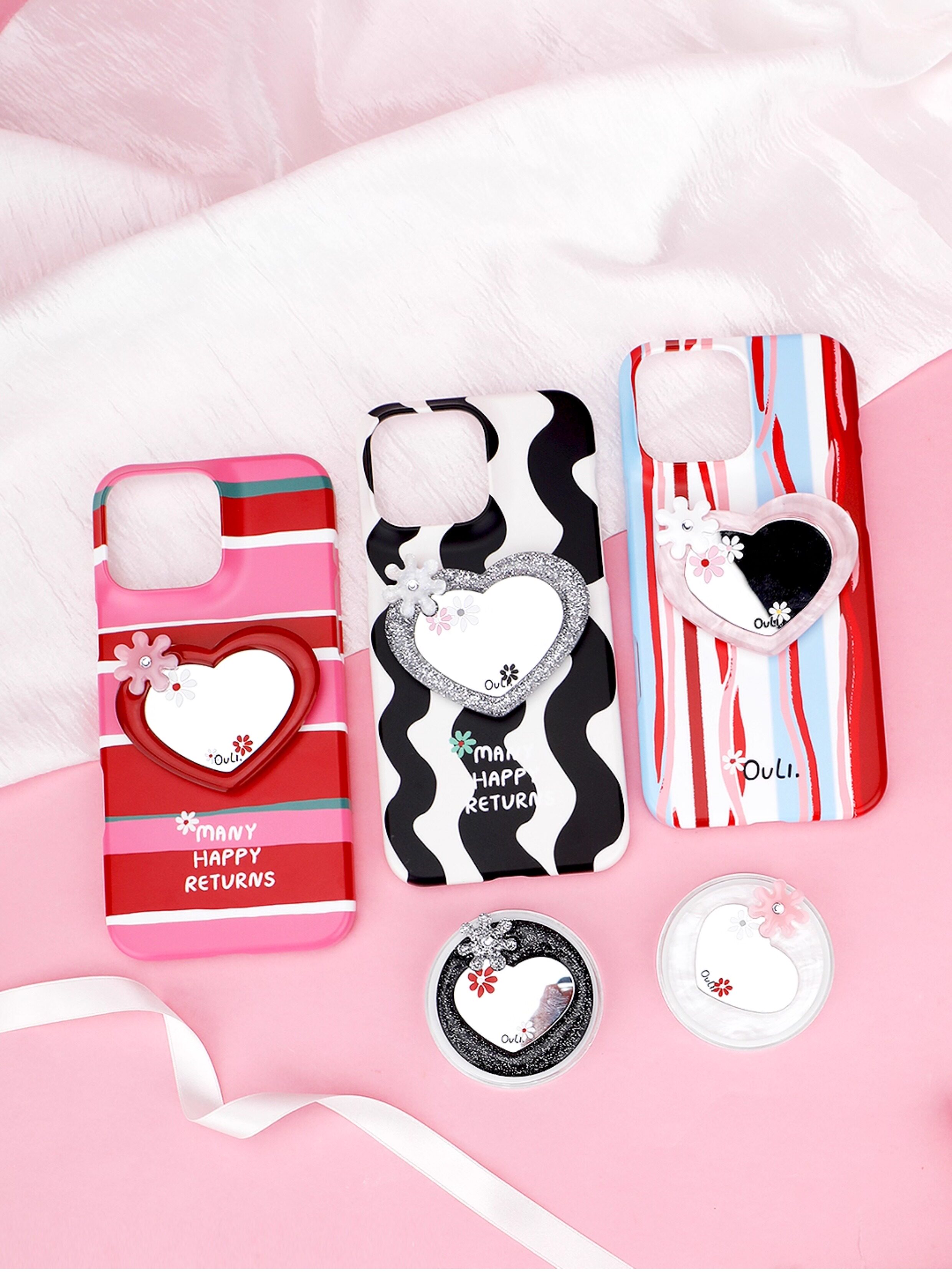 【心動的形狀】OuliOuli手機配件心形鏡子磁吸手機支架小衆風氣囊
