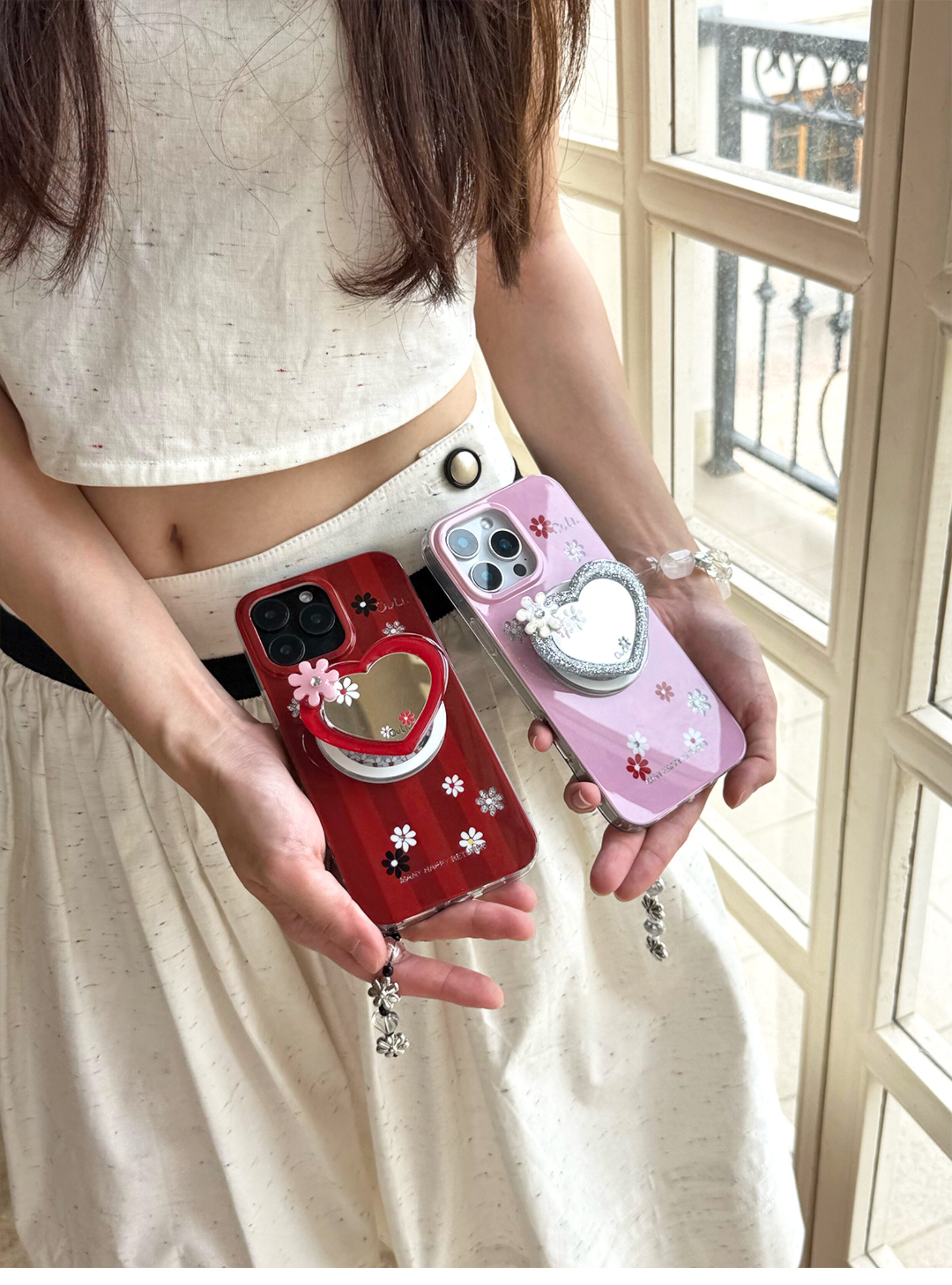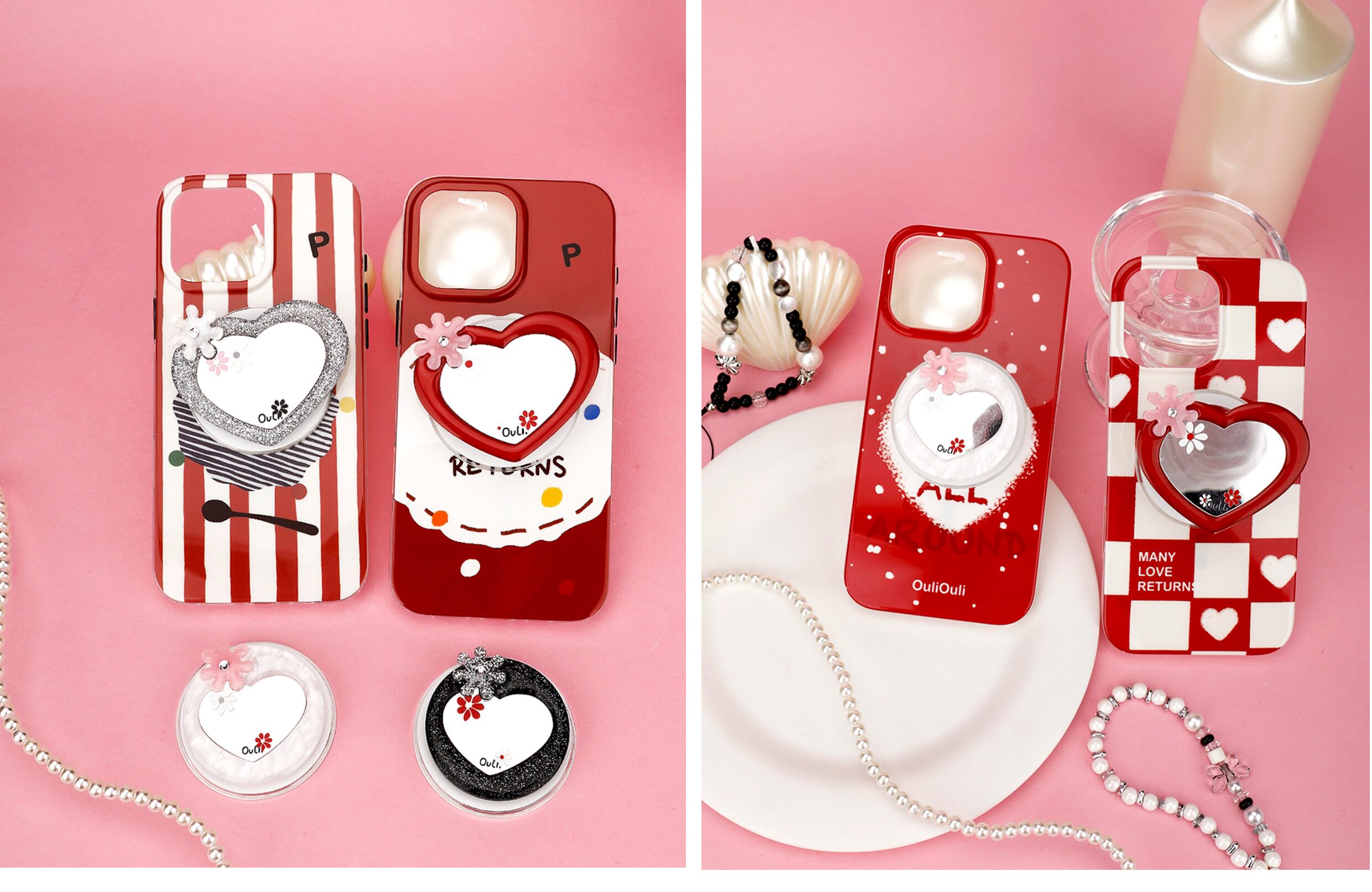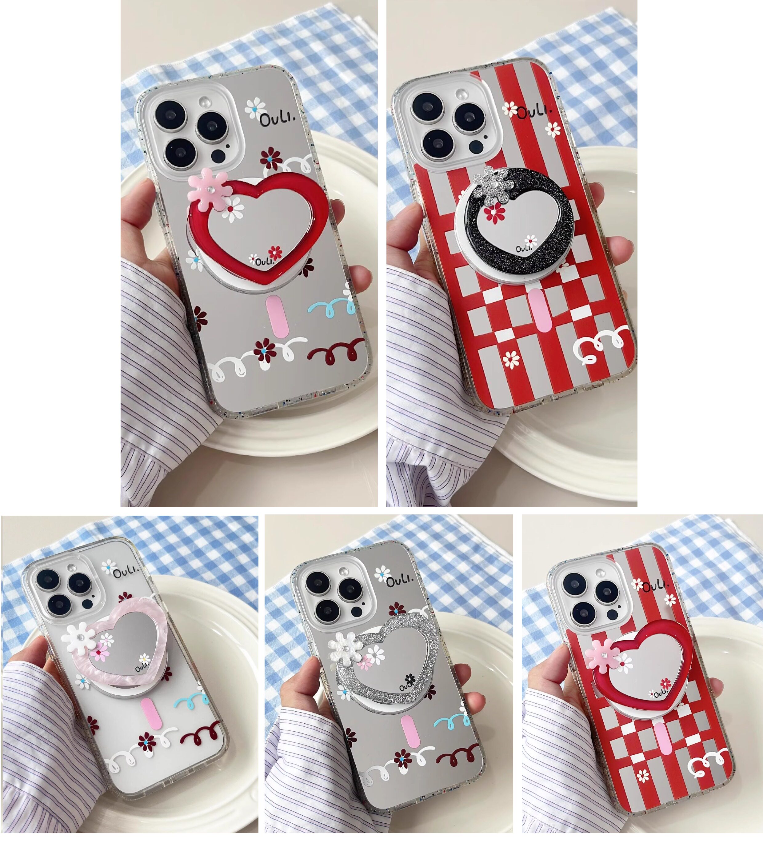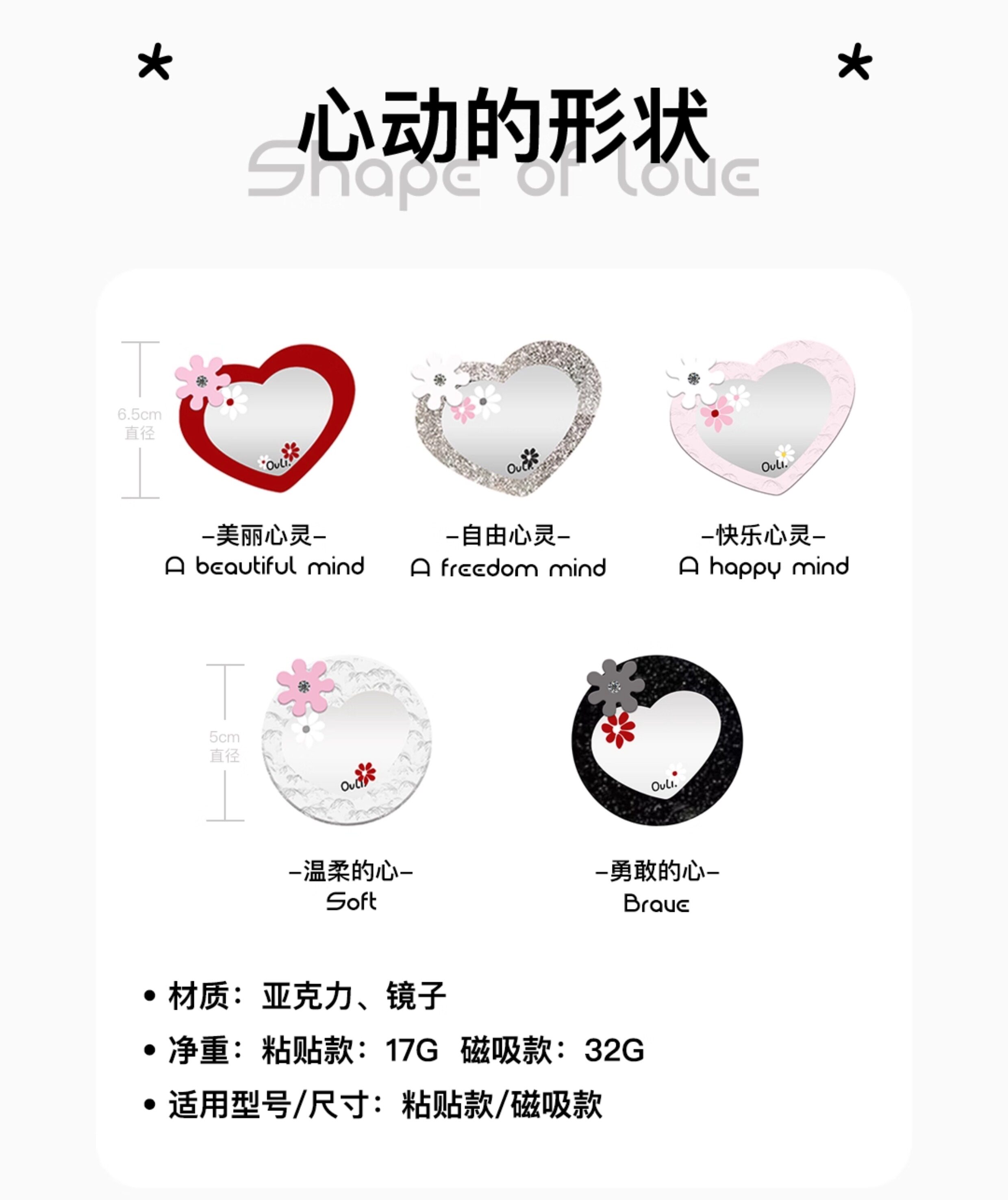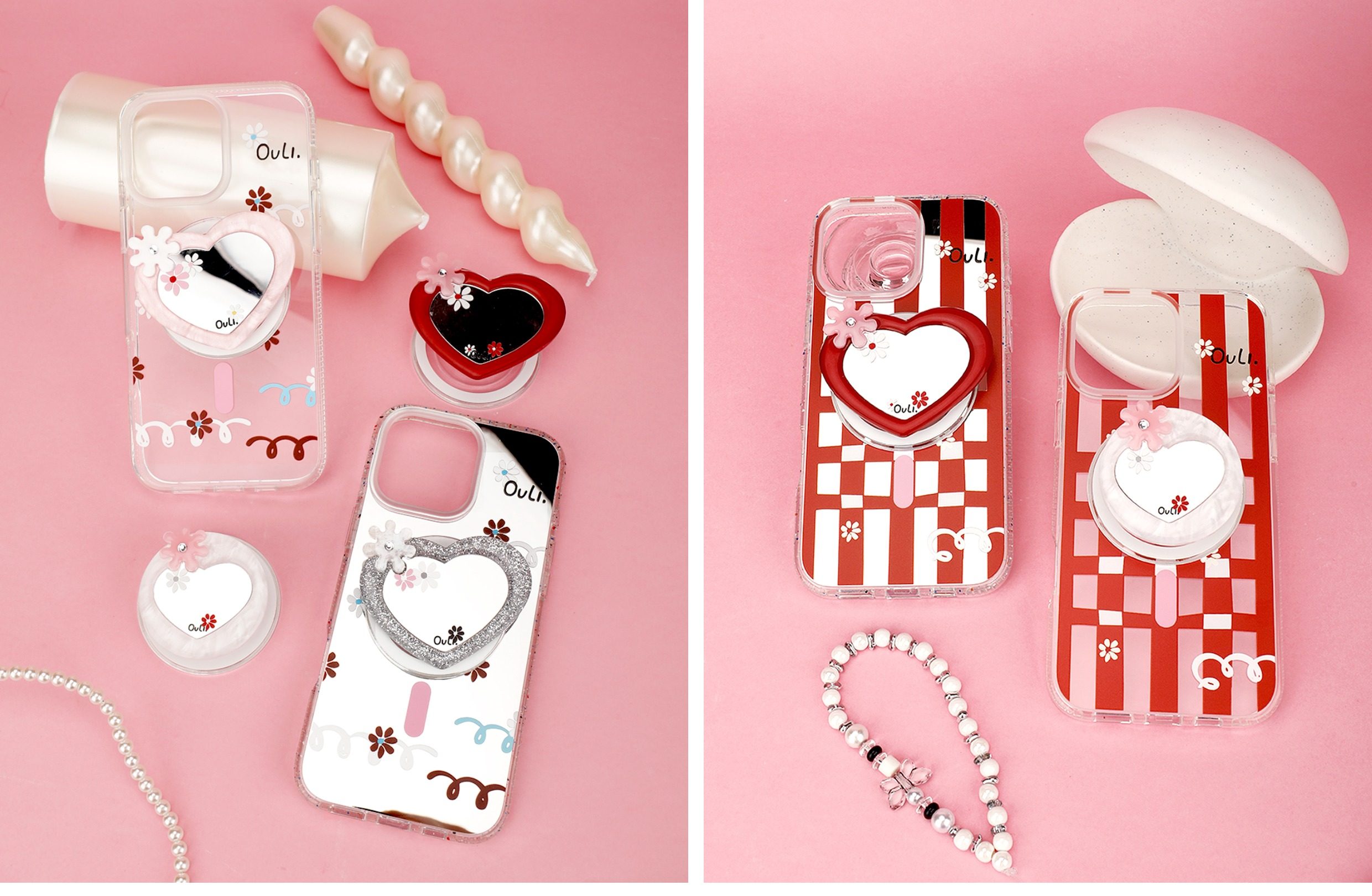 【心動的形狀】OuliOuli手機配件心形鏡子磁吸手機支架小衆風氣囊