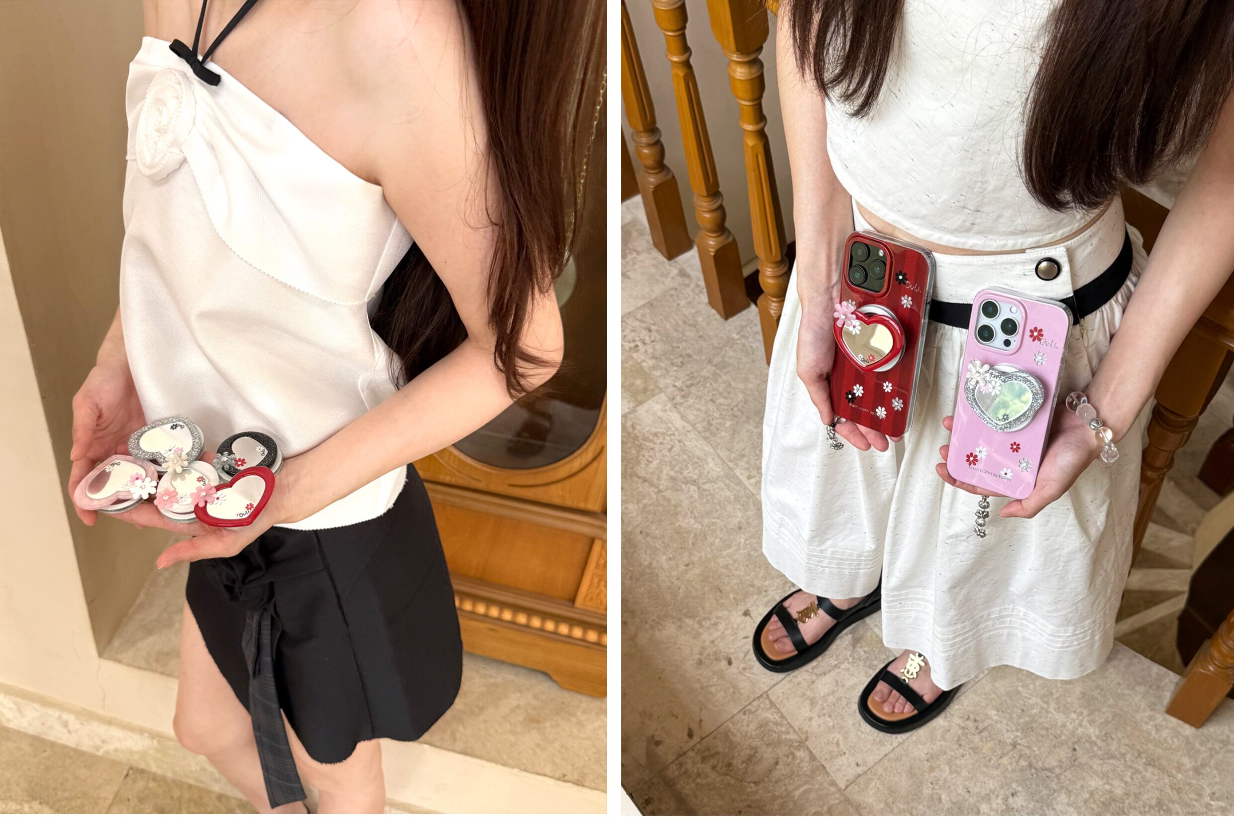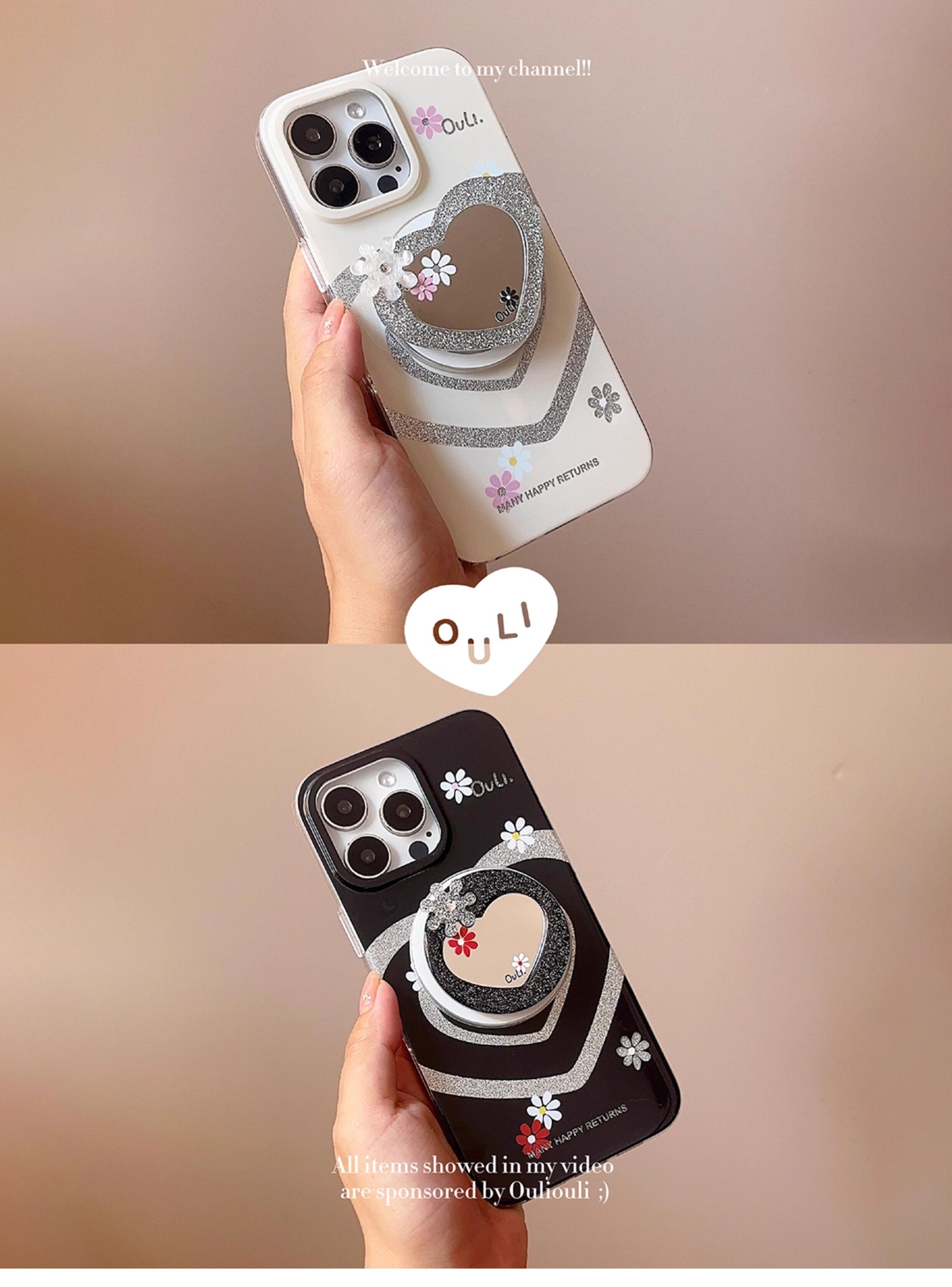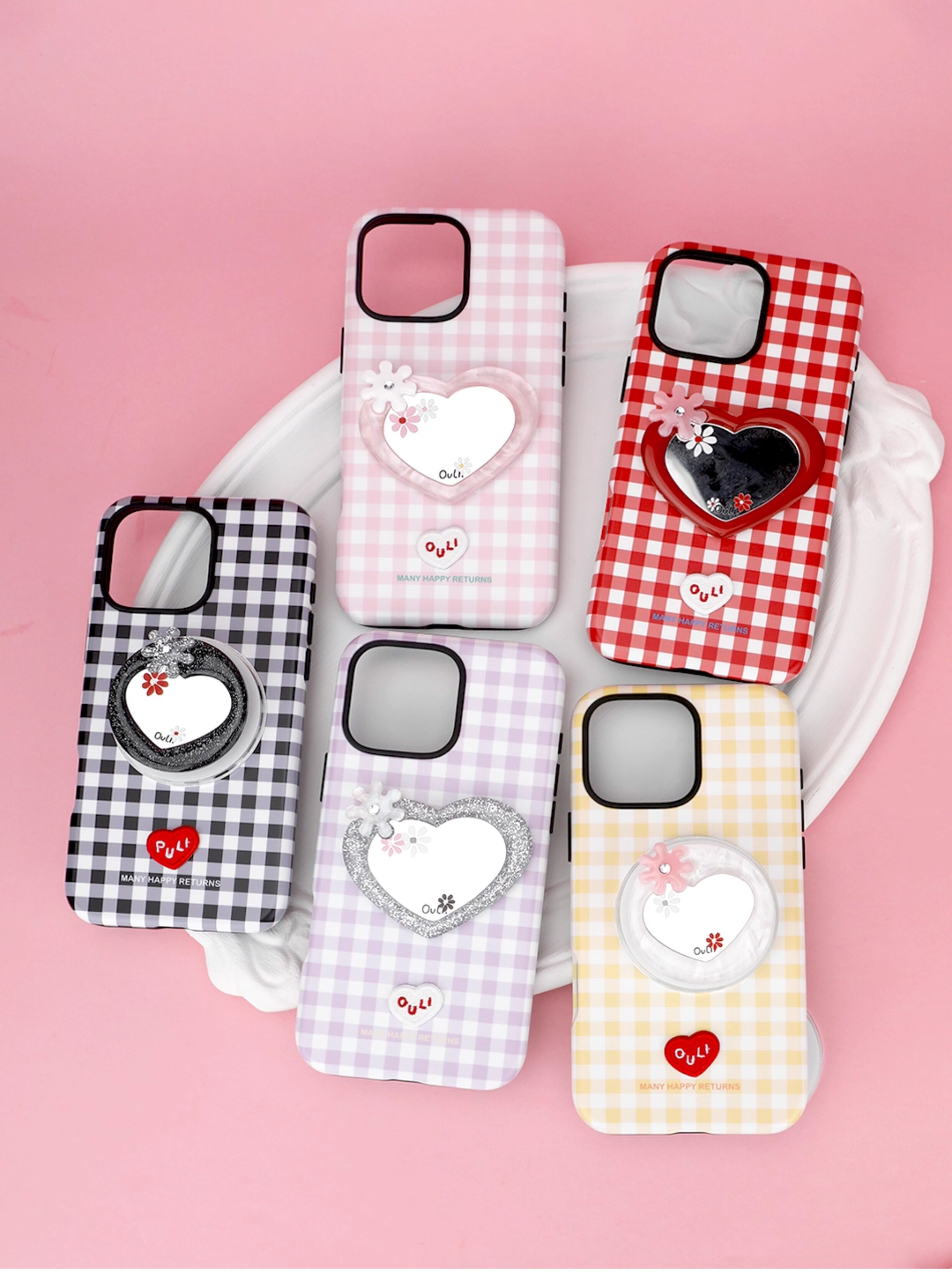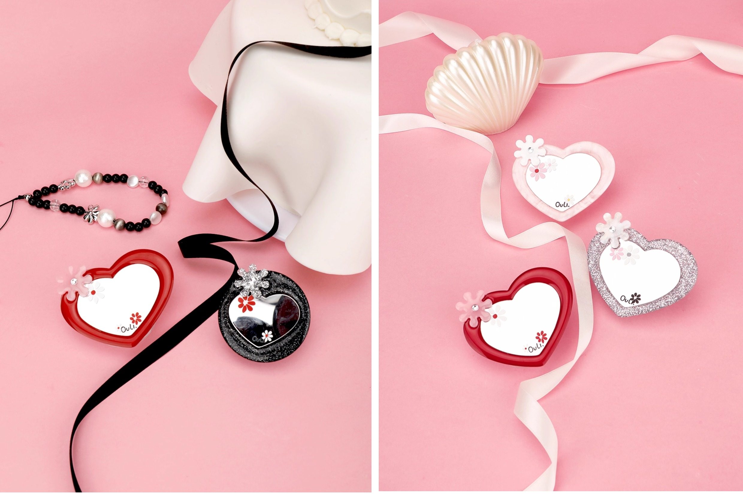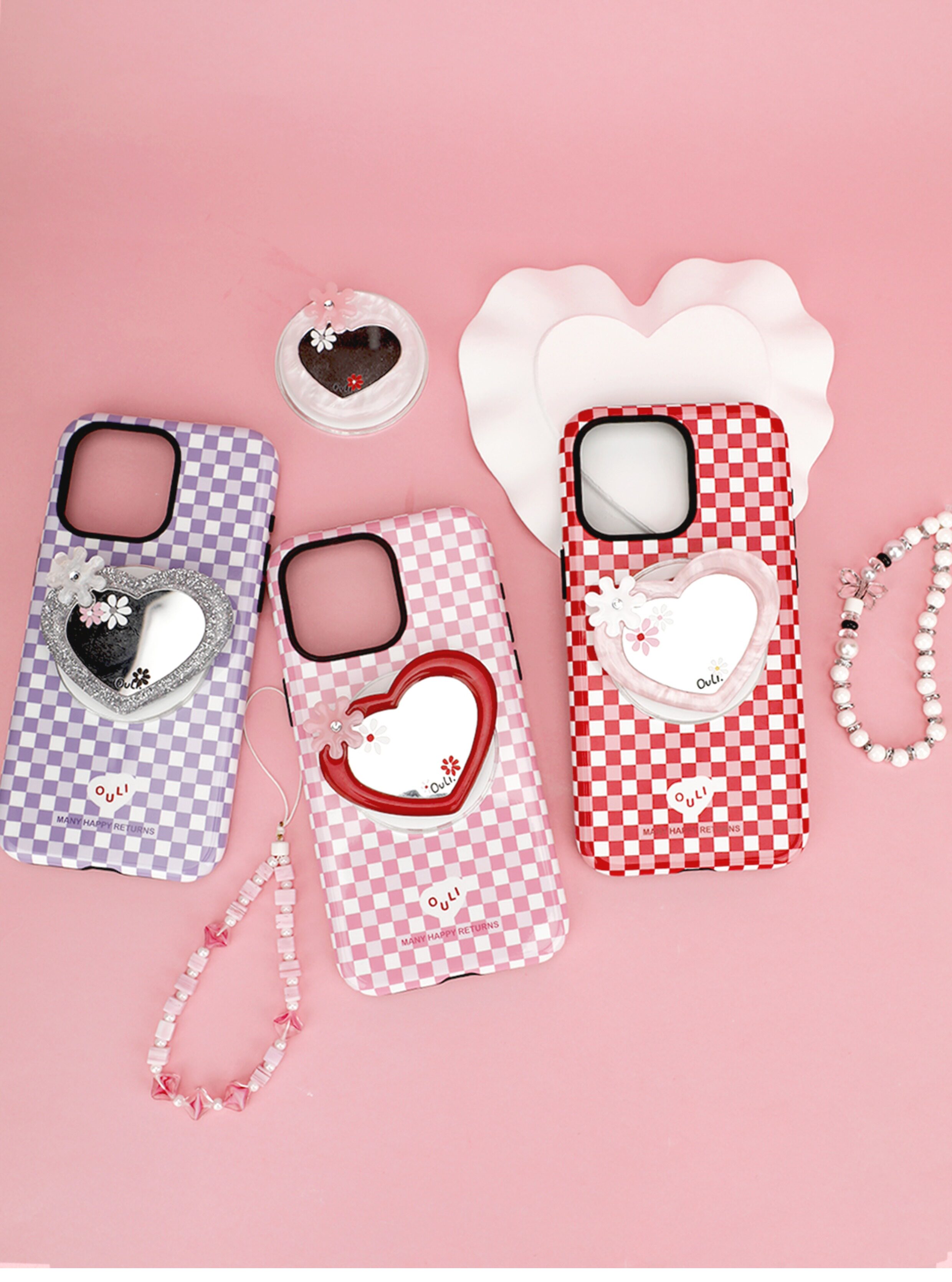 【心動的形狀】OuliOuli手機配件心形鏡子磁吸手機支架小衆風氣囊