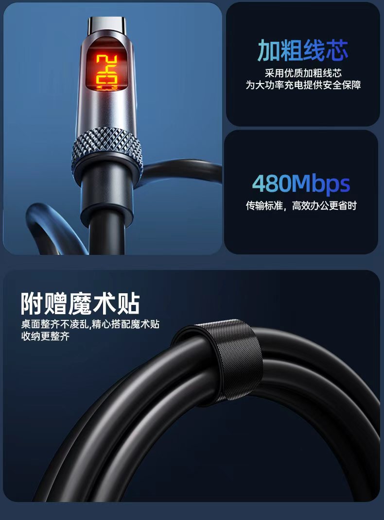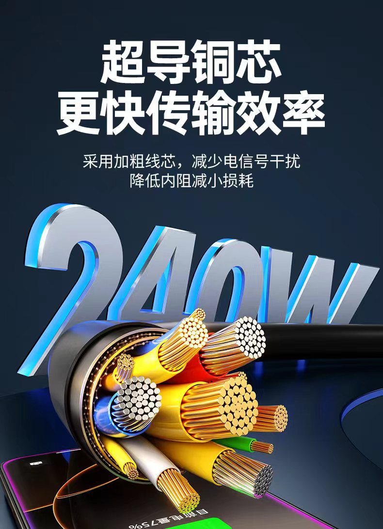 240W超級快充智能數顯6A車用數據線雙TC適用蘋果16/15充電線