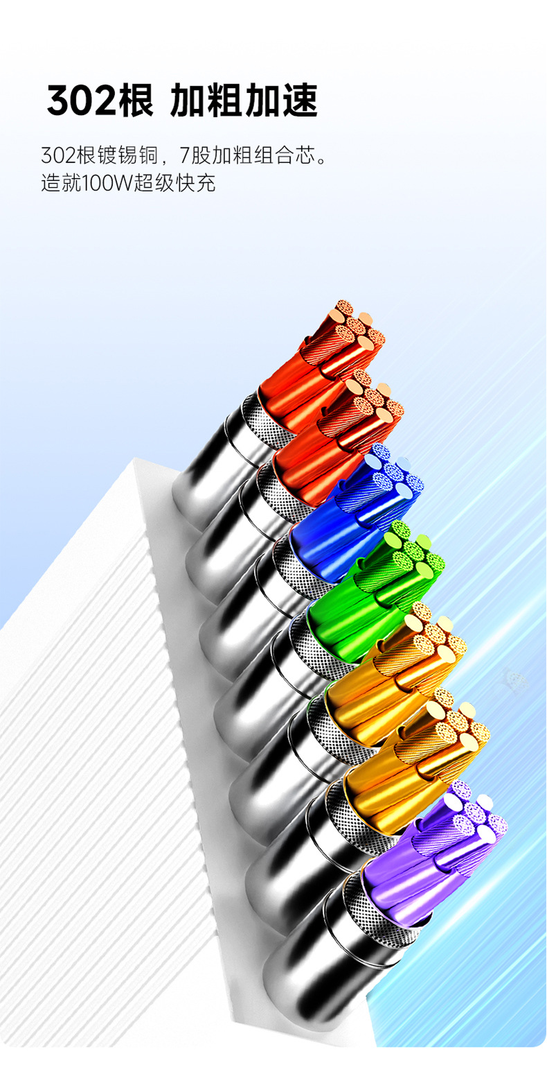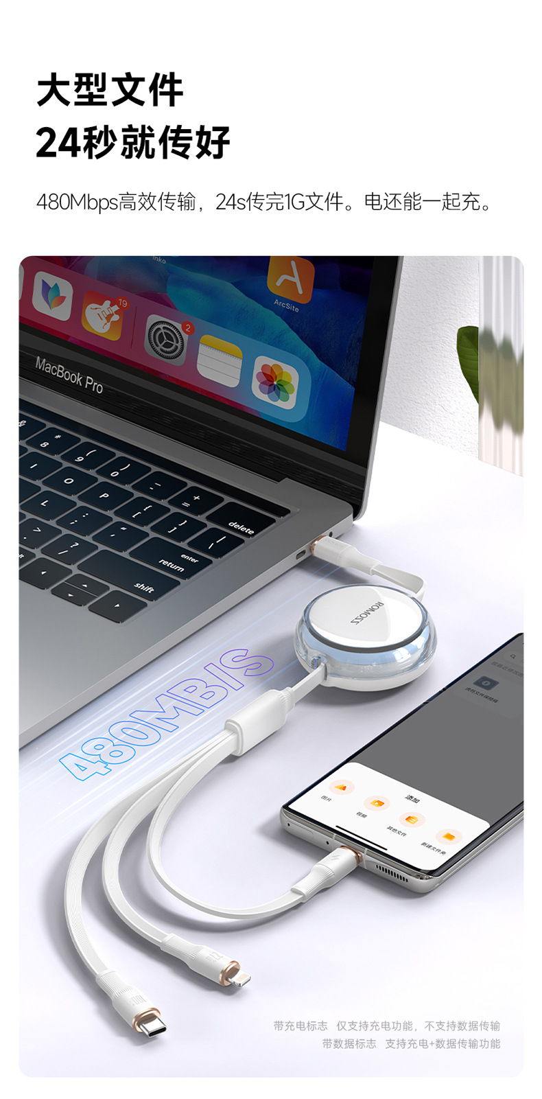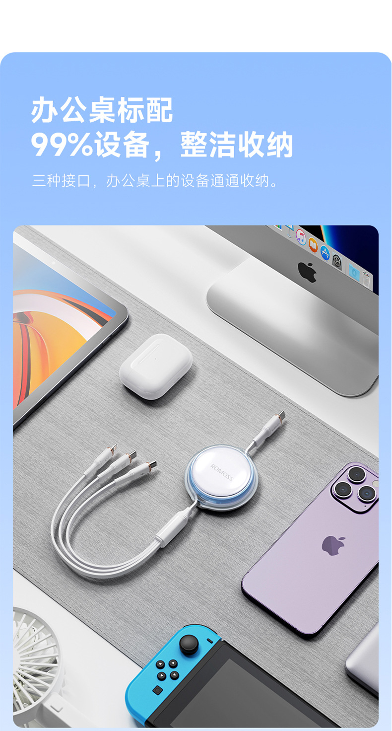 羅馬仕一拖三充電線PD100W適用蘋果華爲筆電數據線三合一快充線