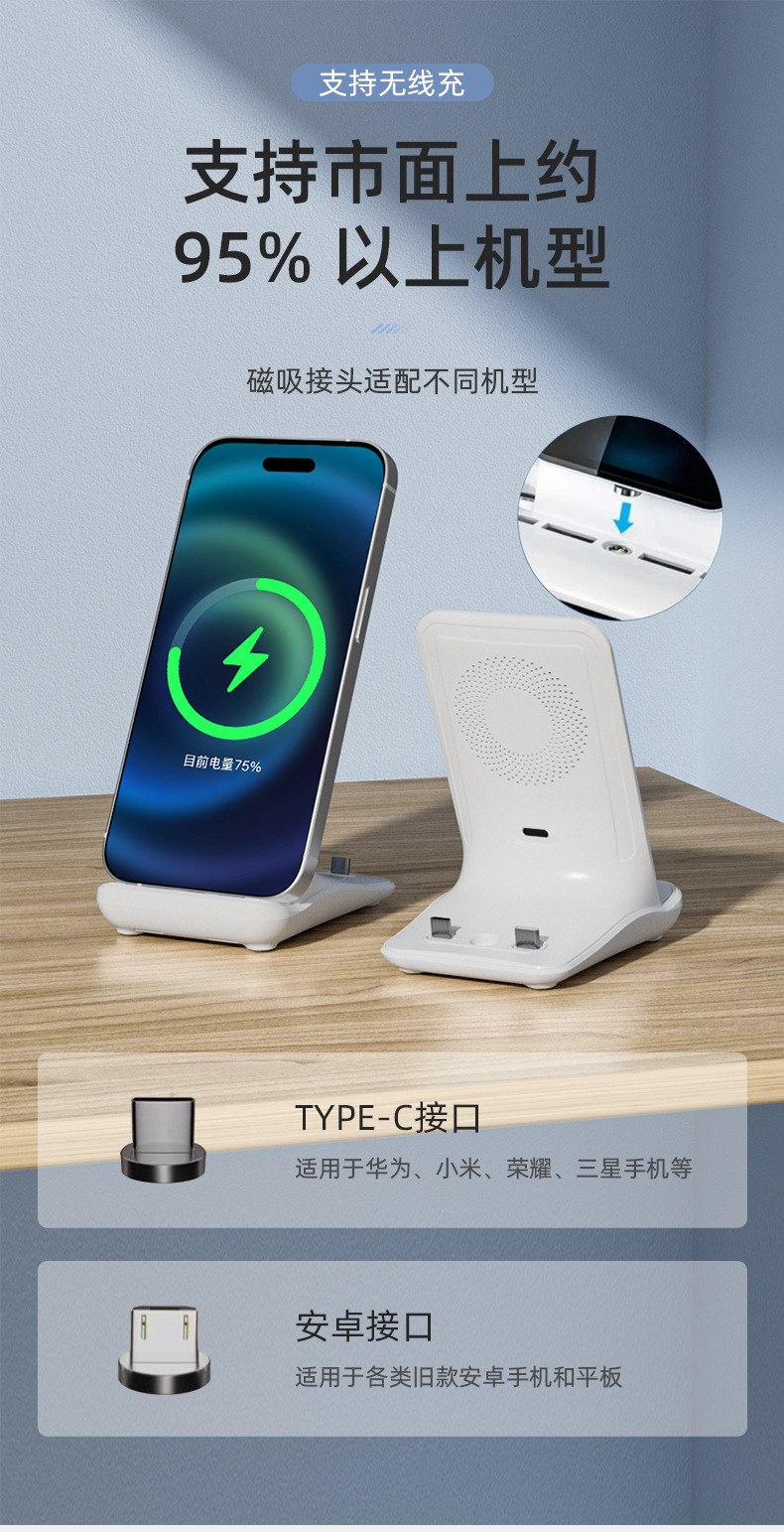 100W磁吸快充透明款新款無線充電器支桌面支架橫竪追劇自動感應