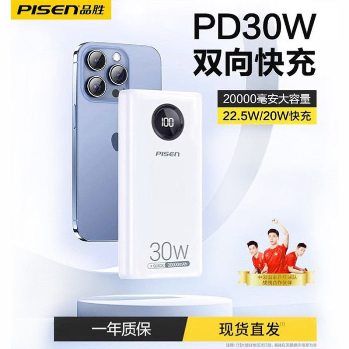 品勝20000安培充電寶大容量30w可攜式pd雙向快充數顯行動電源禮品