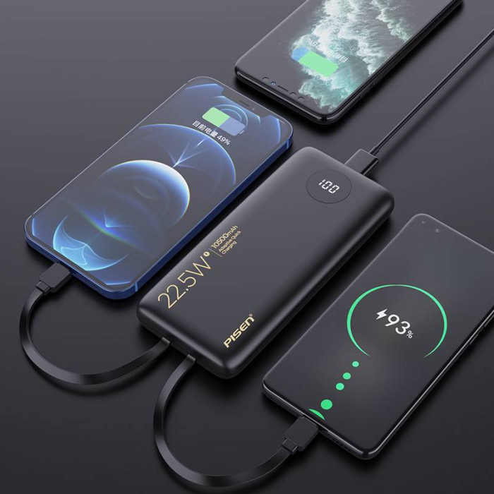 品勝充電寶10500安培自帶線22.5W雙向快充PD行動電源帶數據線