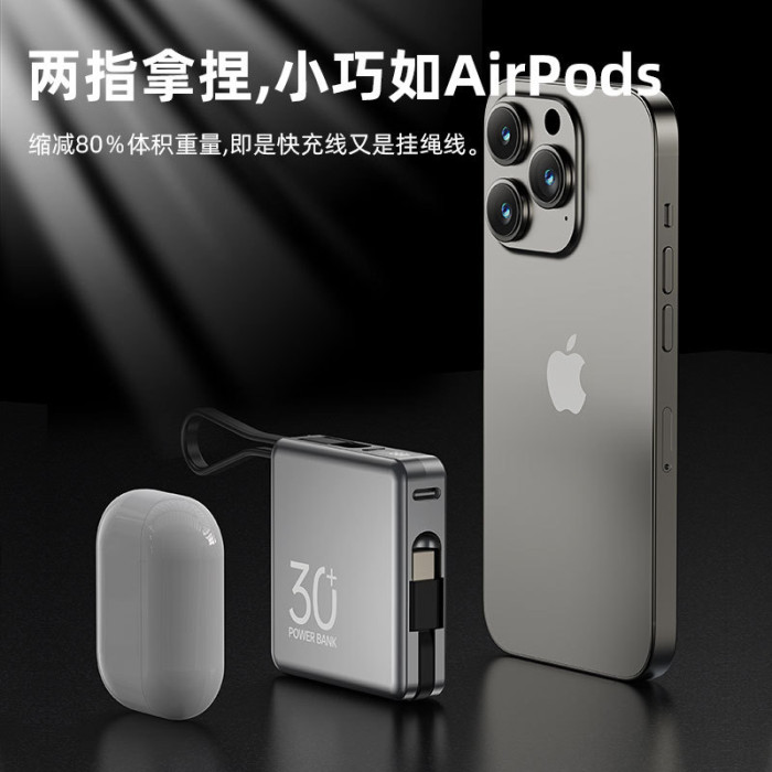 22.5W超級迷你快充自帶線充電寶10000安培超薄行動電源禮品