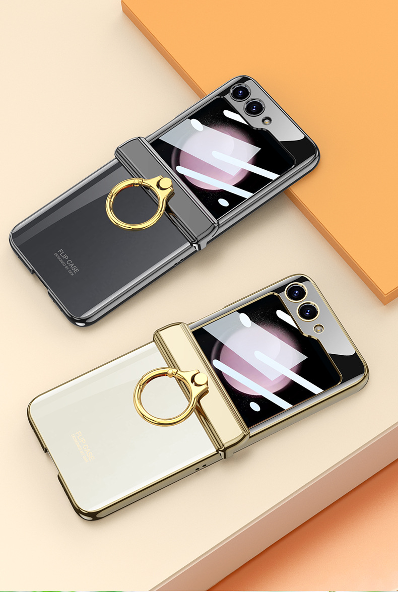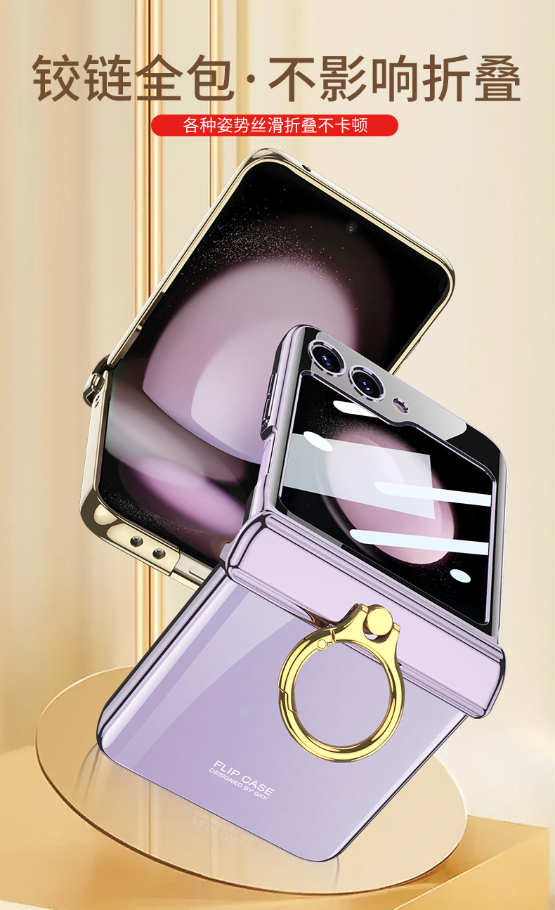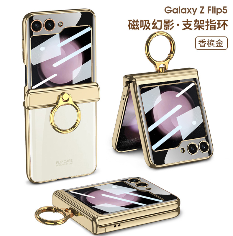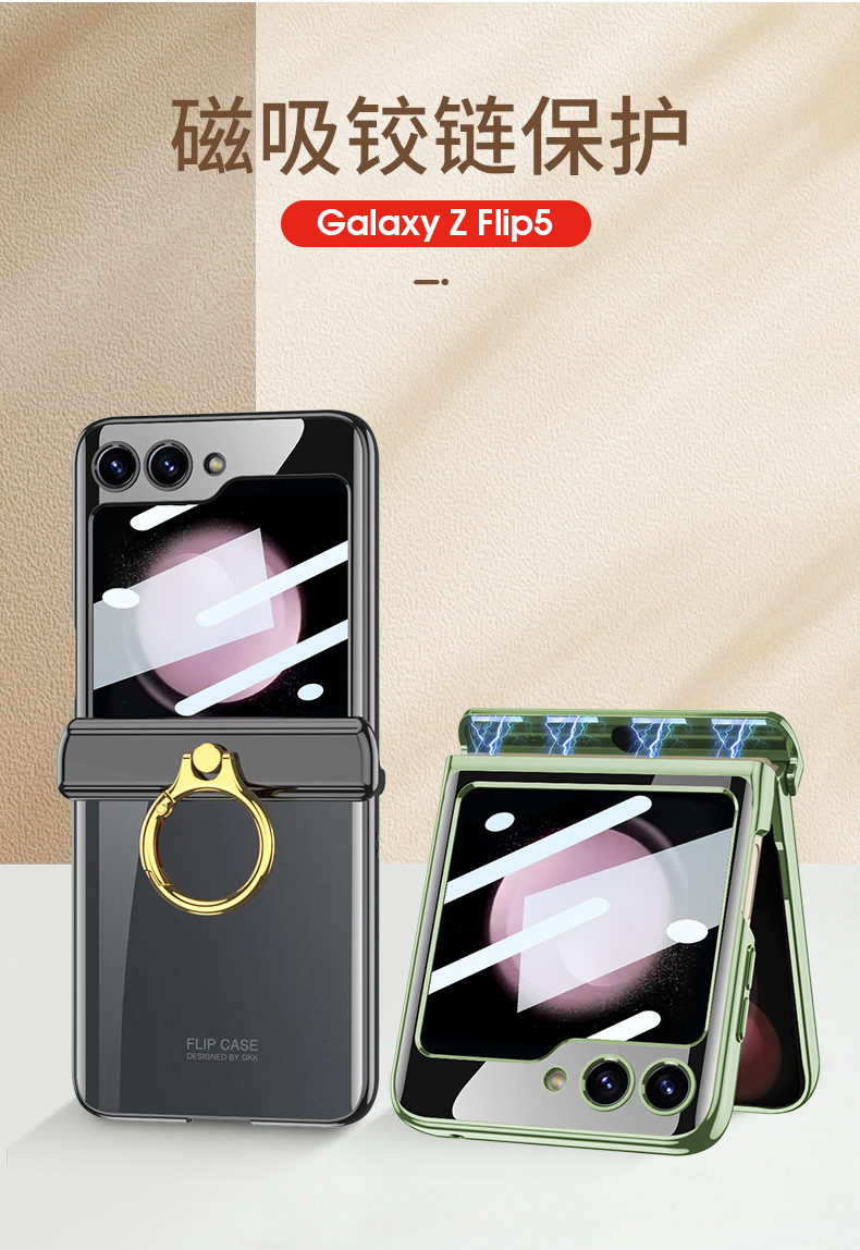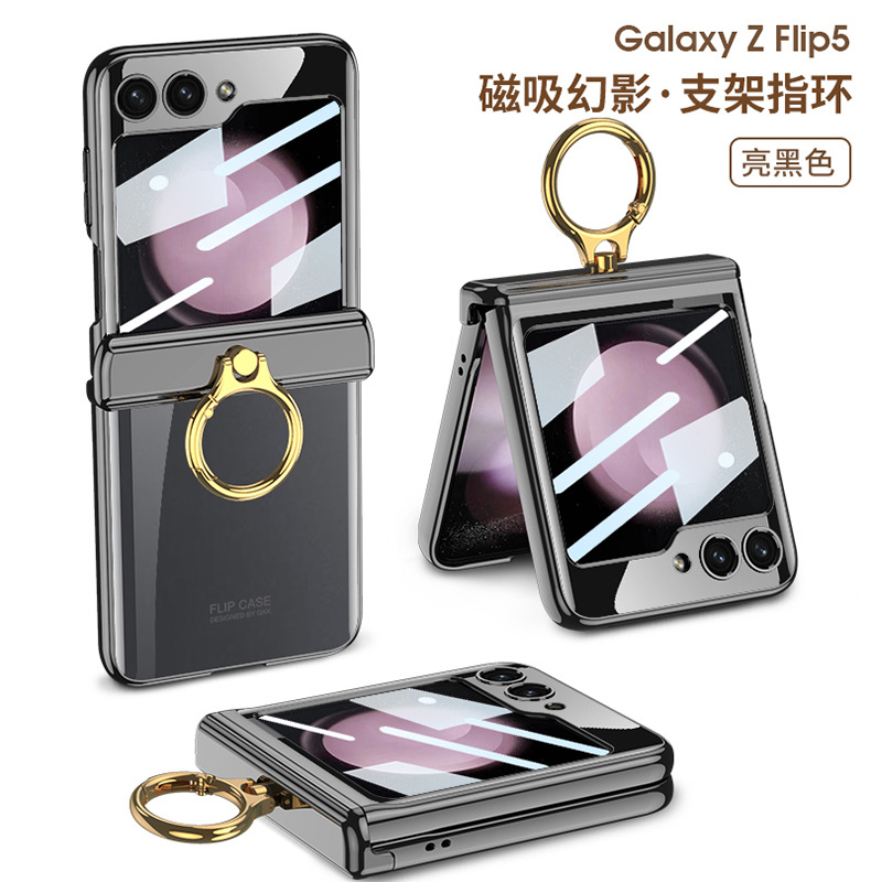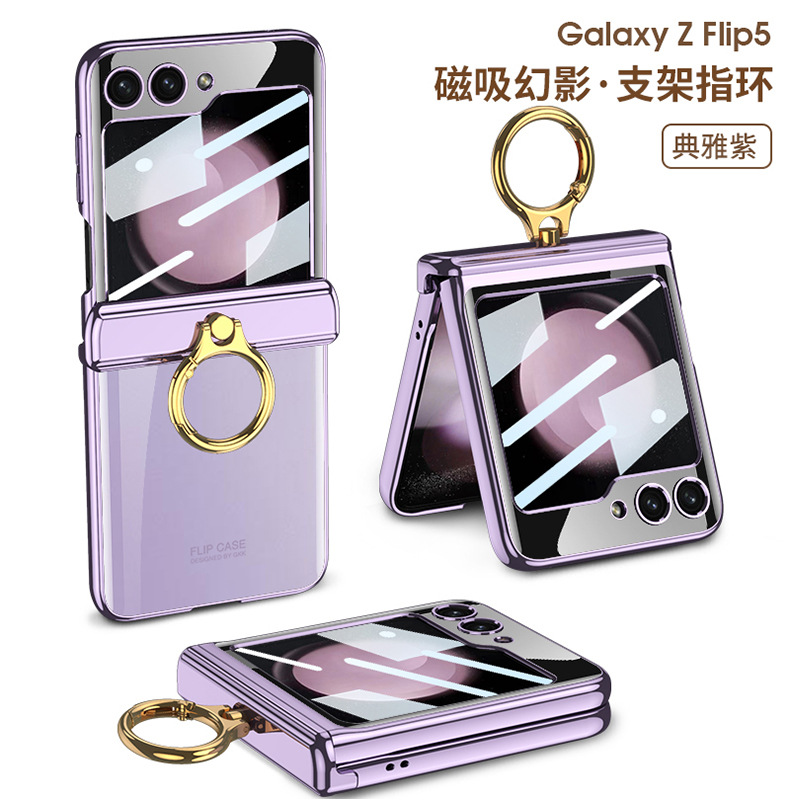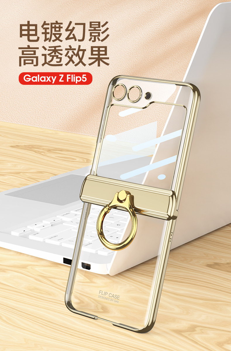 適用三星flip5電鍍指環支架防摔手機殼z flip5透明殼膜保護套gkk