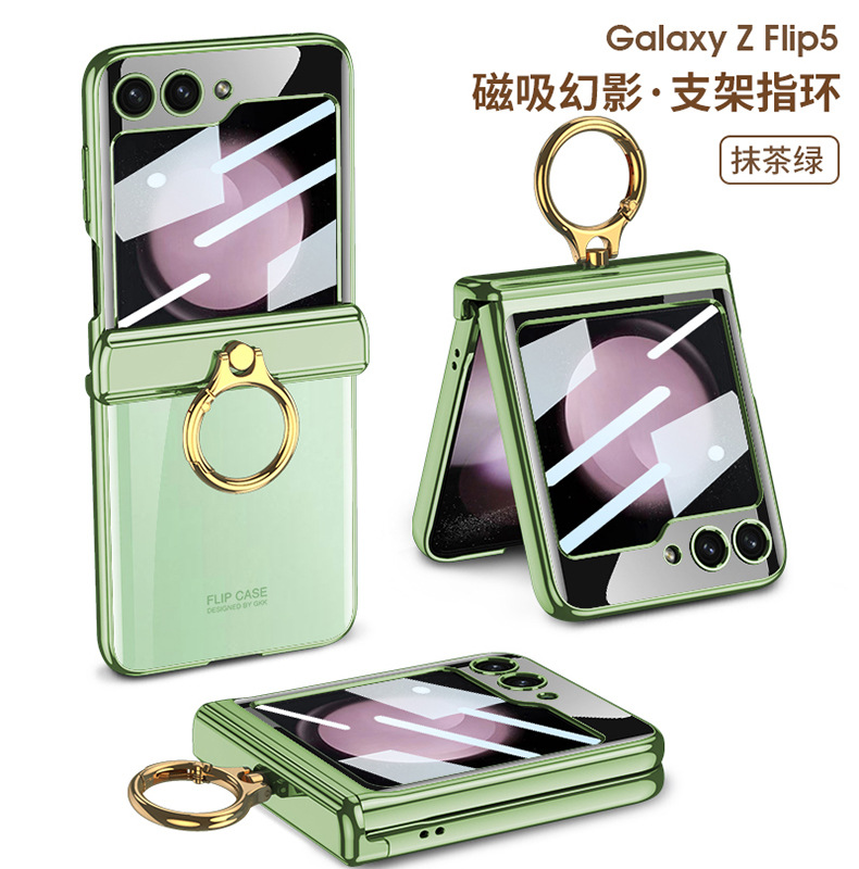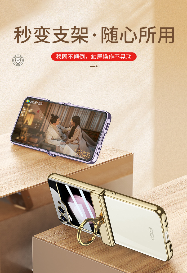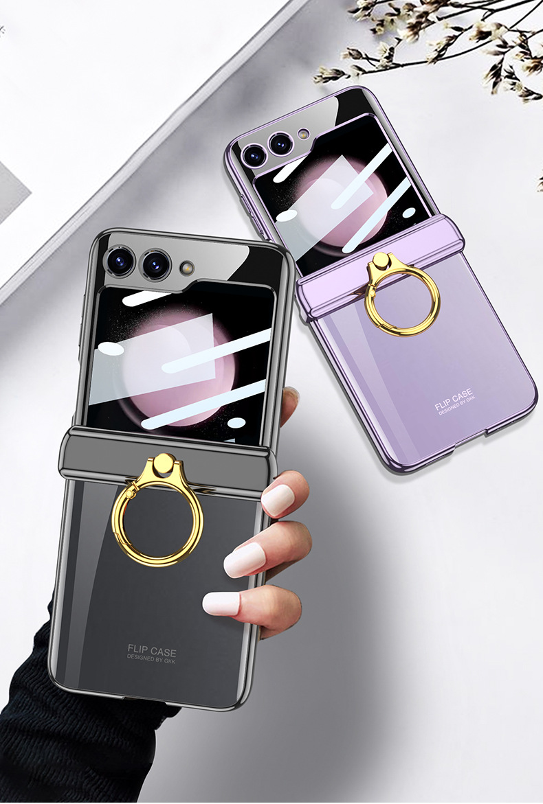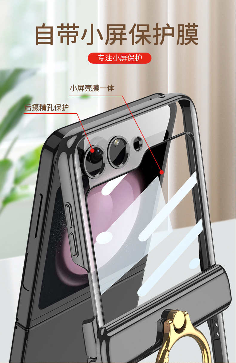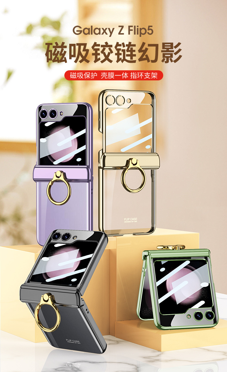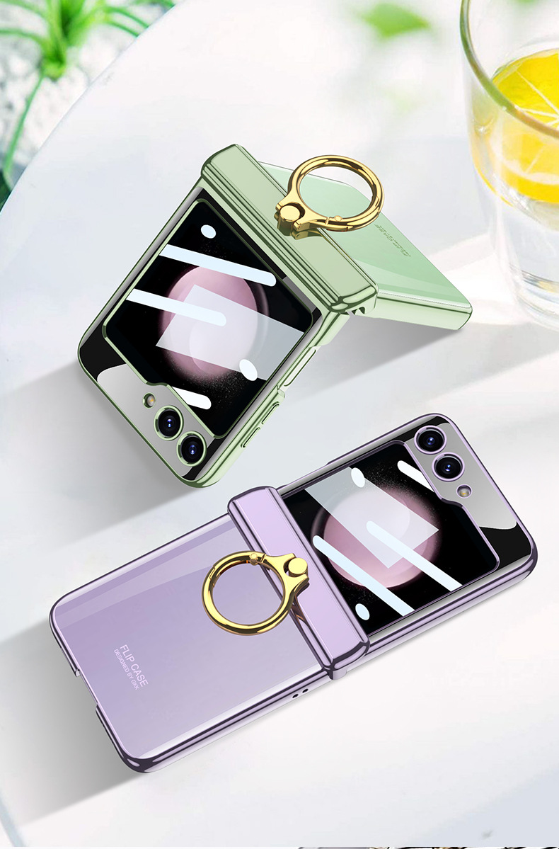 適用三星flip5電鍍指環支架防摔手機殼z flip5透明殼膜保護套gkk