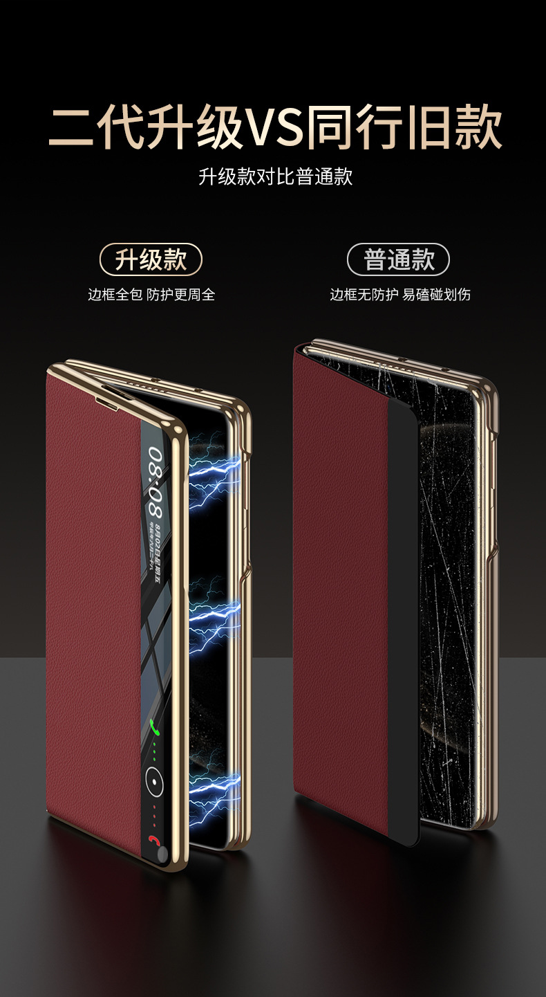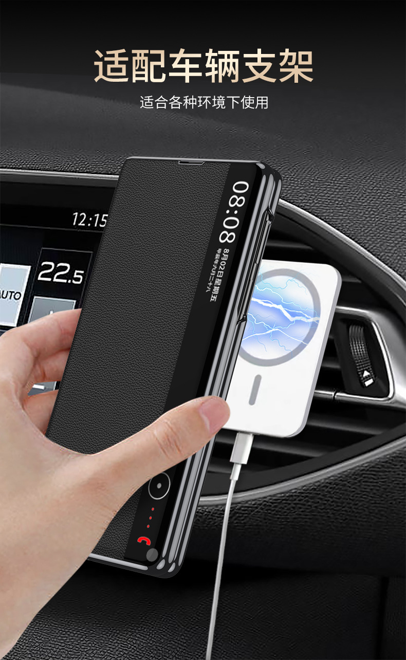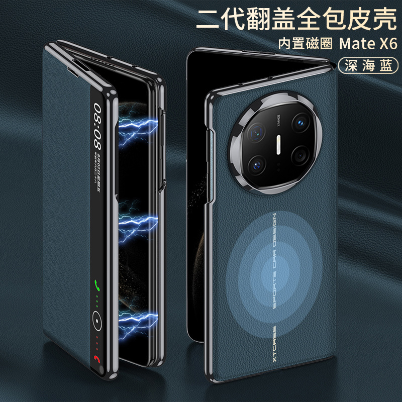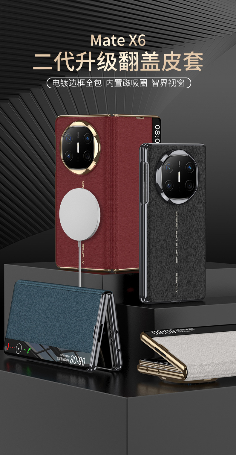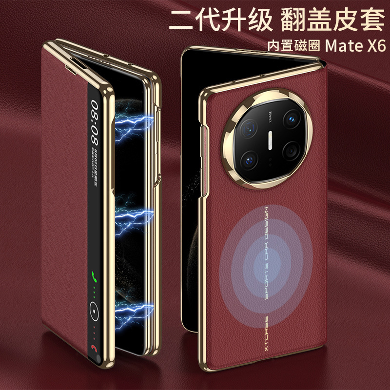 適用華爲matex6手機殼matex6典藏版保護套磁吸無線充視窗繙蓋皮套