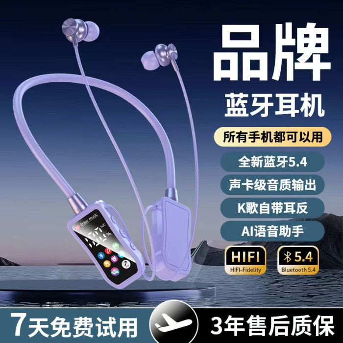 新款無線藍牙耳機數顯掛脖運動音質耳返監聽插卡降噪舒適超長續航