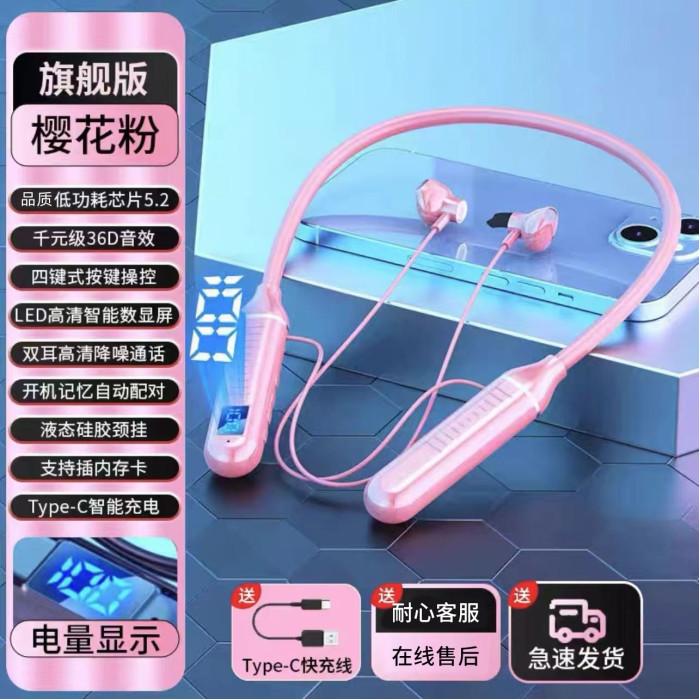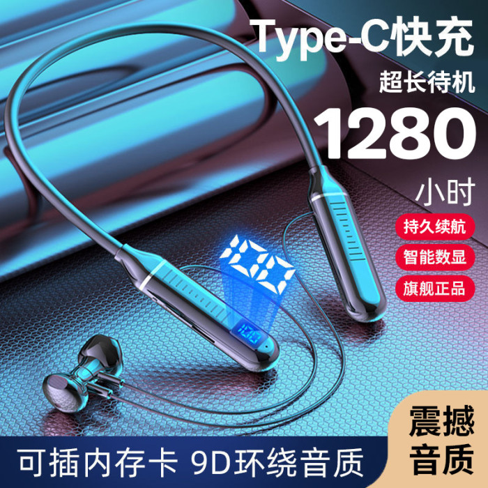 藍牙耳機適用於蘋果華爲小米新款運動降噪頸掛式超長待機有線