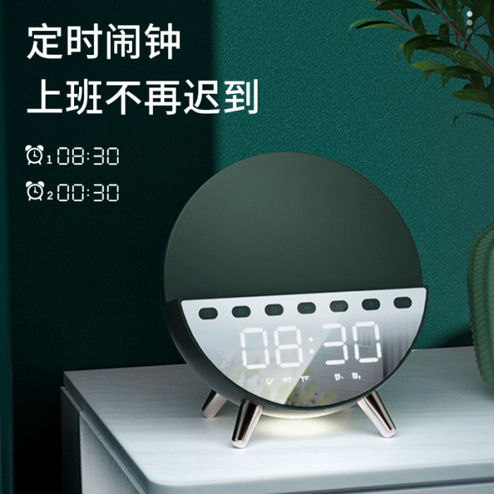 艾吾新款多功能5合一手機無線充電器15W創意帶藍牙音響閙鍾小夜燈