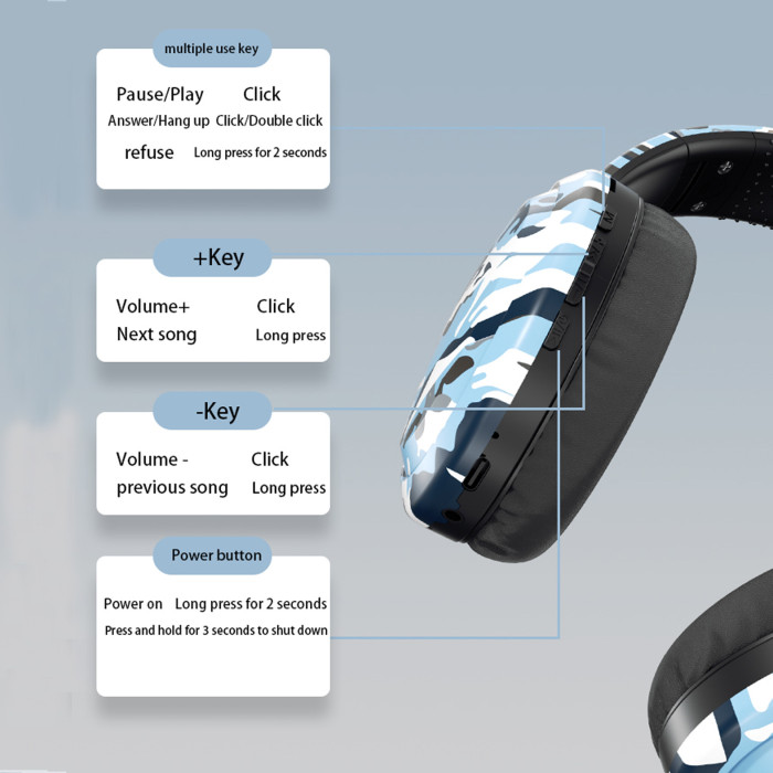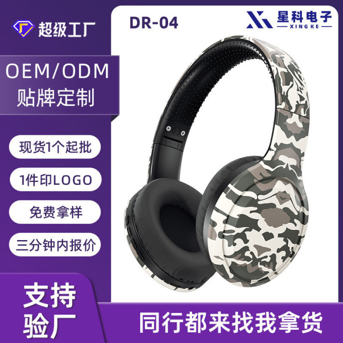 歐美迷彩風頭戴式耳機超長續航插卡耳麥HIFI音質無線藍牙耳機