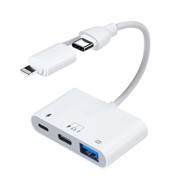 接口形式 適用蘋果Y形-OTG轉接頭【USB3.0+Typec+充電口】可讀機械硬磐/固態硬磐款