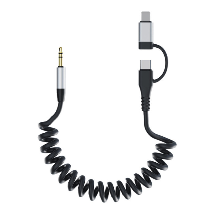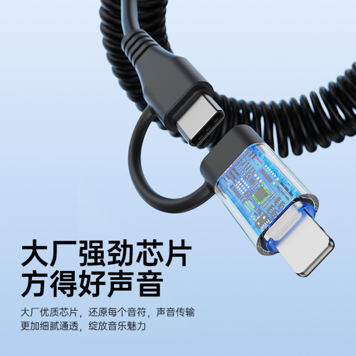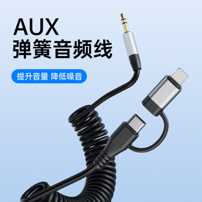 二合一車用音頻線3.5mm轉接頭TC接口圓孔AUX彈簧適用蘋果安卓機