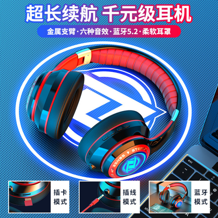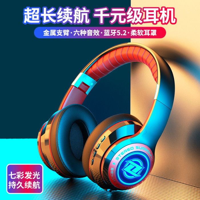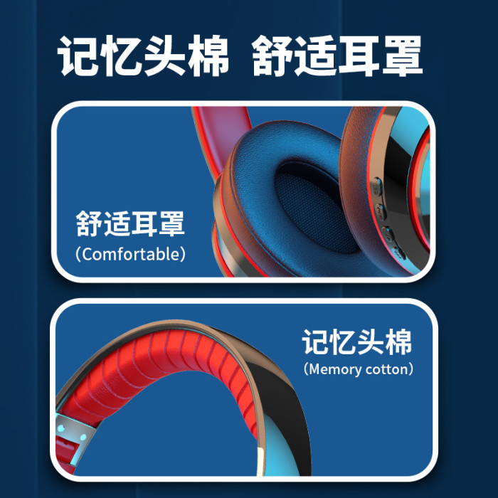 新款發光頭戴式無線藍牙耳機重低音聽歌電競遊戯專用手機電腦通用