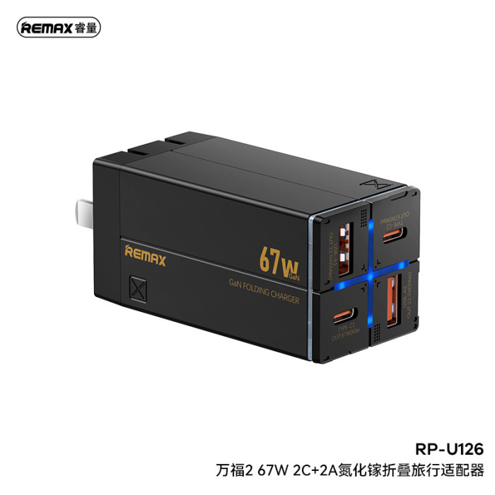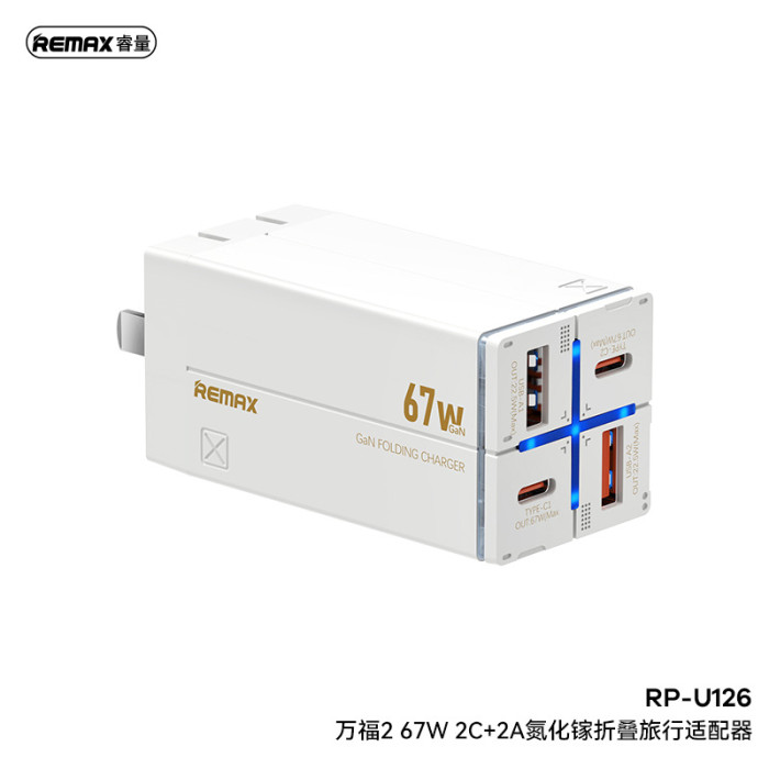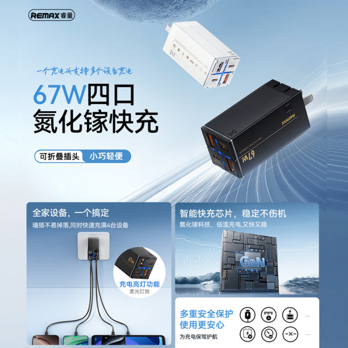 REMAX 萬福2 多口充電頭 Type-C手機充電器67W可折曡氮化鎵快充頭