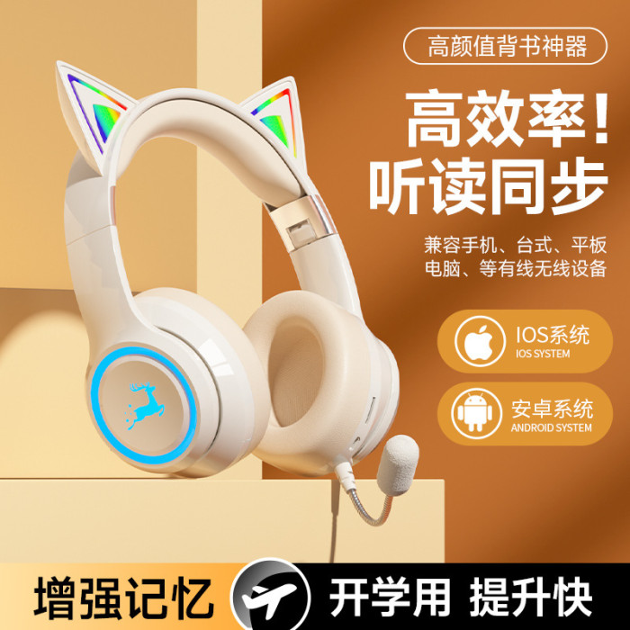 背書神器耳返兒童誦讀藍牙耳機頭戴式學生學習專用可愛貓耳朵聖誕